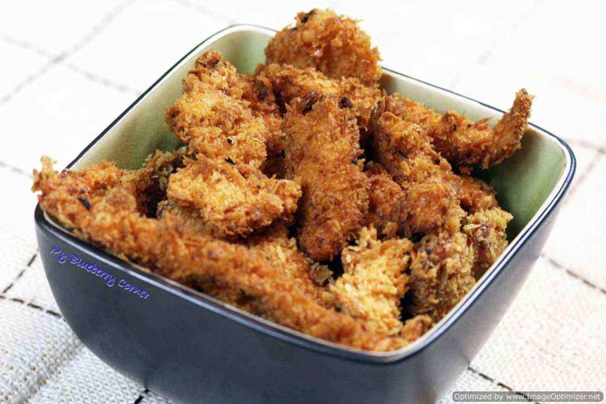 Jeść w sałatkach lub jako samodzielne danie. Nam, chrupiący kurczak w panierce panko najlepiej smakuje z sosem BBQ.
