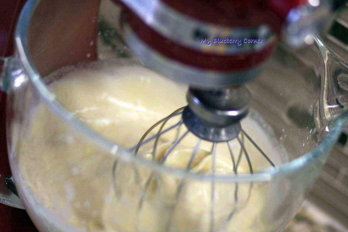 Gdy ciasto będzie gładkie i kremowe zmieszać z pozostałym mlekiem. Można odstawić ciasto na pół godziny, ale nie jest to konieczne.