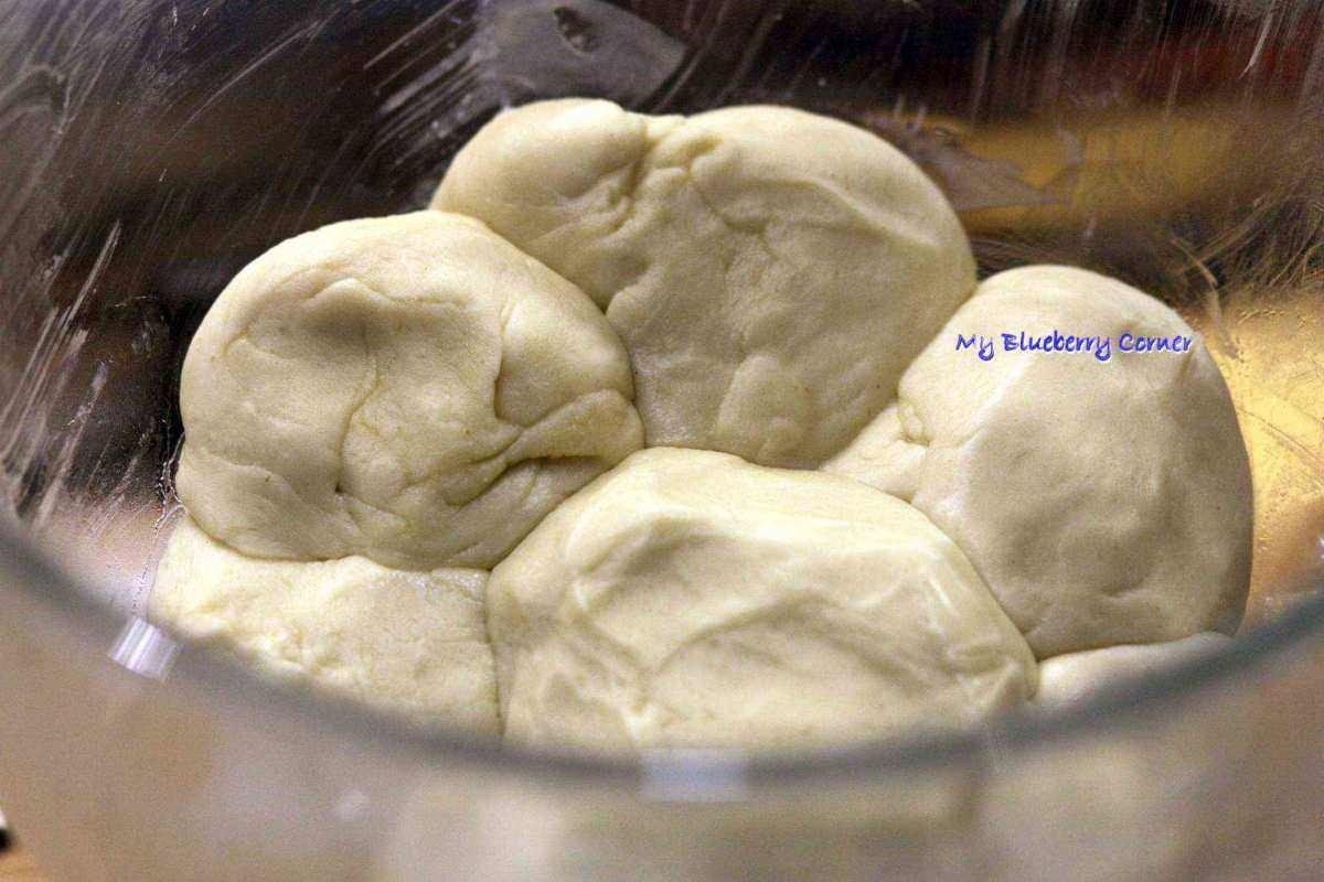 Ciasto podzielić na 10 równych części, uformować kulki w dłoniach i odstawić na minimum 10-20 minut (nakryć kulki luźno folią, aby nie obeschły). Kolejno rozwałkowywać wałkiem ciasto na cieniutkie placki.