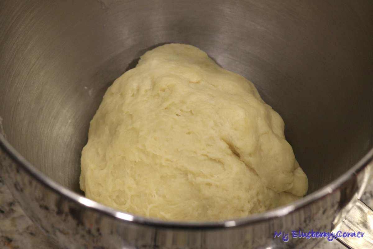 Mąkę przesiać, dodać sól. Smalec roztopić w gorącej wodzie (powinna powstać pełna szklanka płynu). Wodę z roztopionym smalcem stopniowo dodawać do mąki, mieszając w mikserze lub drewnianą łyżką.