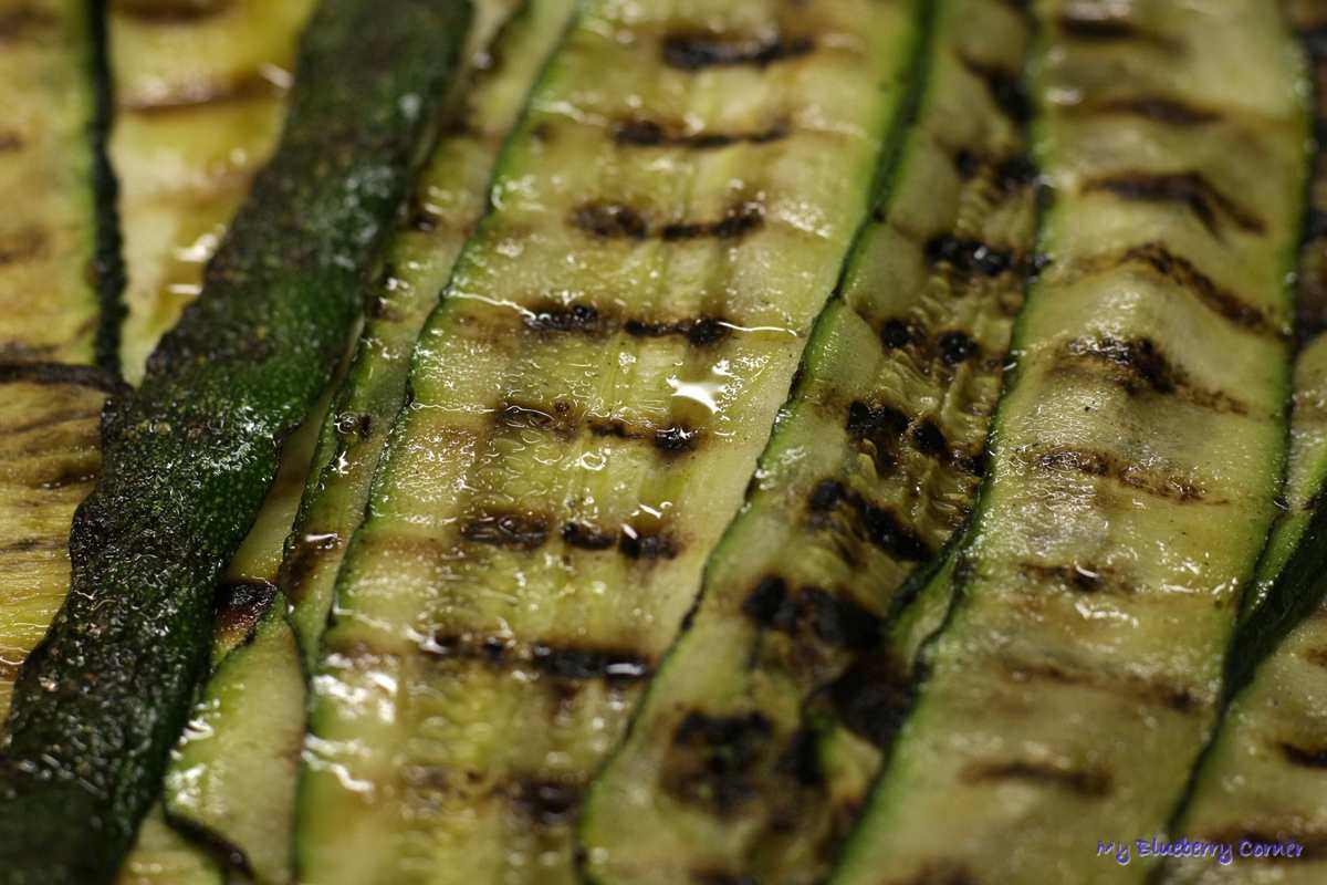 Każdy plaster opiekać na grillu tradycyjnym, elektrycznym lub na patelni grillowej. Ostudzić. Po kolei smarować cukinię twarożkiem (najbardziej lubię Almette bazyliowy lub z pomidorami).
