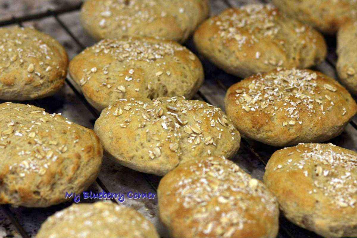 Smaczne bułki owsiane na śniadanie, na kolację, do kanapek, często podaje je razem z domowymi hamburgerami. Świeżo upieczone, domowe bułki to świetny wybór. Jeśli wolicie bułki pszenne to też znajdziecie je u mnie na blogu. Znajdzie tu również przepis na chleb pszenny, chleb z zakwasem, rozmarynowe bagietki, pszenne bułki do hamburgerów lub bułki z serem.