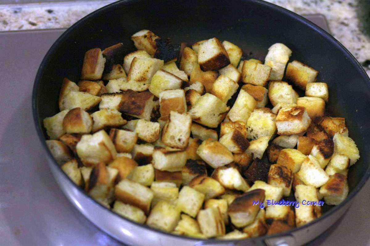 Dodać sos Worcestershire, sok z cytryny i parmezan, przyprawić świeżo zmielonym pieprzem do smaku. Wszystko wymieszać drucianą rózgą, odstawić. Piersi kurczaka przyprawić jak lubicie i usmażyć (najlepiej na patelni grillowej). Bułkę pokroić w kostkę, skropić oliwą z oliwek i usmażyć na grzanki.
