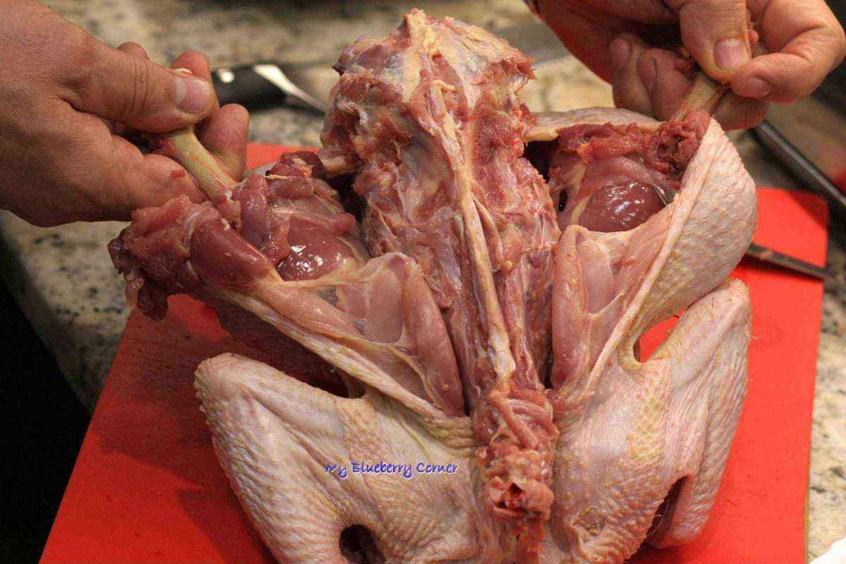 Kaszę jaglaną ugotować i zostawić do ostudzenia. Kurczaka umyć, osuszyć i wyluzować z kości. Luzowanie kurczaka polega na specjalnym nacięciu skóry na grzbiecie kurczaka i delikatnym usunięciu wszystkich kości.