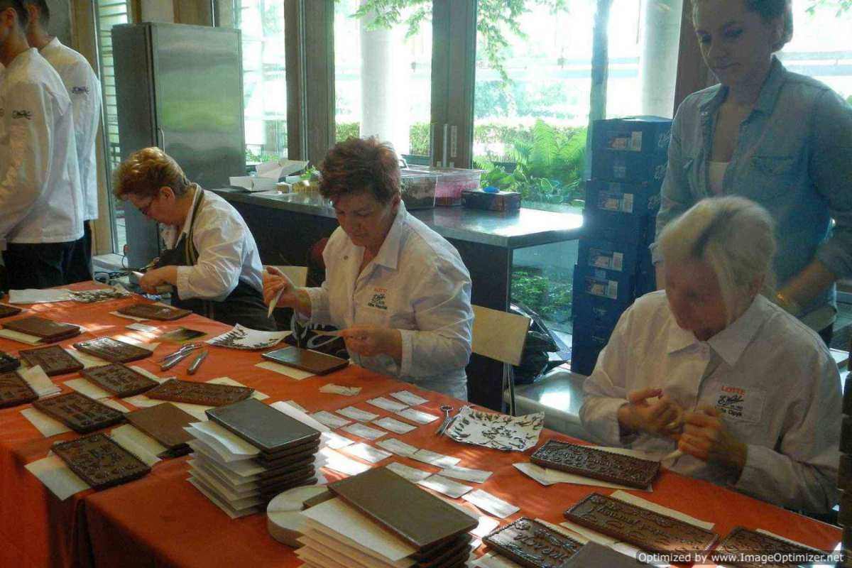 Państwo Profus, którzy od lat pracują w wedlowskiej Pracowni Rarytasów, udzielali kulinarnych porad, a pozostali pracownicy dekorowali (dla każdego uczestnika indywidualnie) olbrzymie tabliczki czekolady.