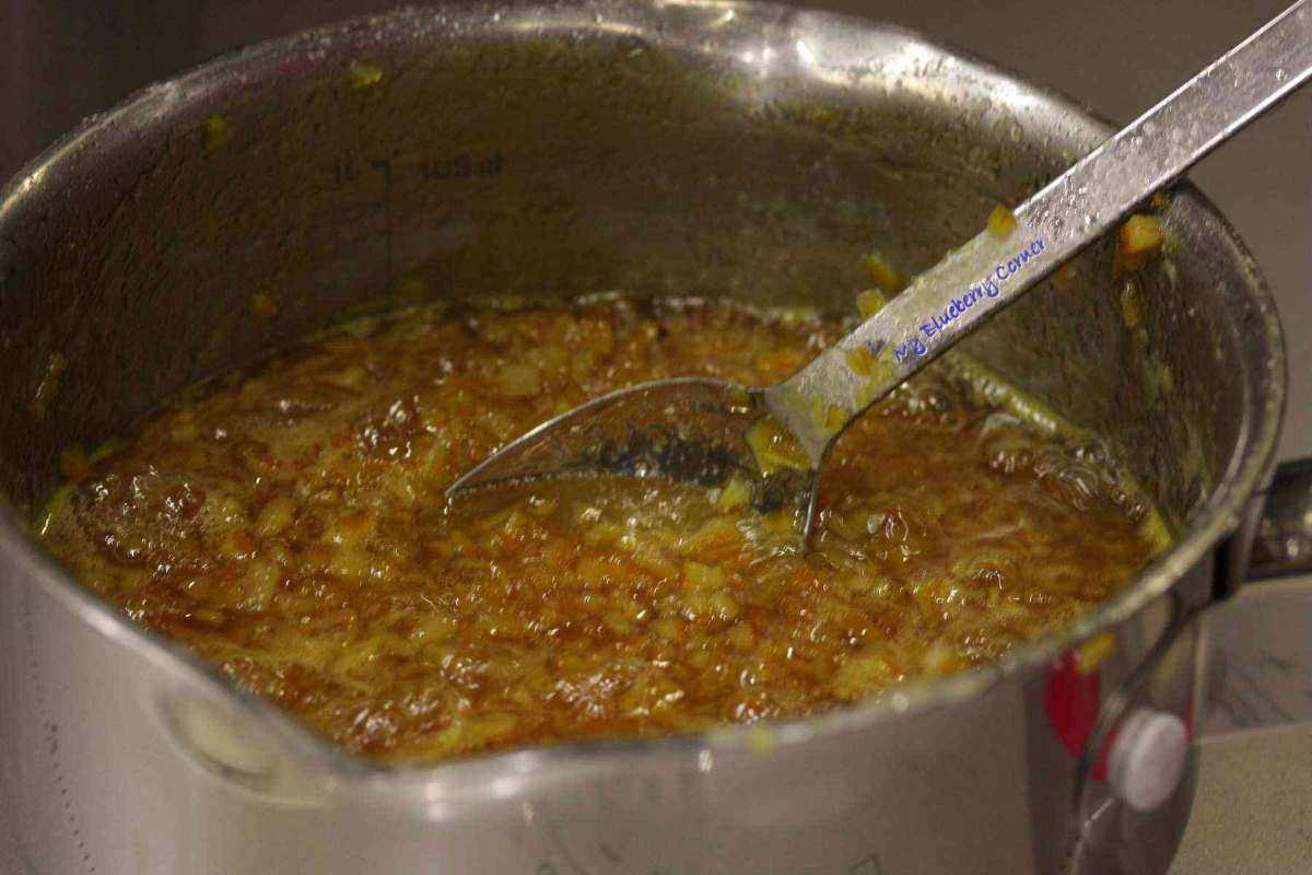Pozostawioną pomarańczową część drobno posiekać.