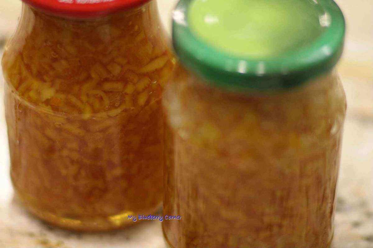 Gdy syrop ze skórkami mocno zgęstnieje, dolać pozostałe 50 ml wody. Gotować około 1  godziny, do czasu gdy skórki będą wystarczająco miękkie (jeśli syrop będzie wciąż za gęsty dolać więcej wody). Ciepłe skórki przełożyć do małych słoików. Szczelnie zakręcić. Kandyzowana skórka z pomarańczy powinna być zawsze pod ręką.