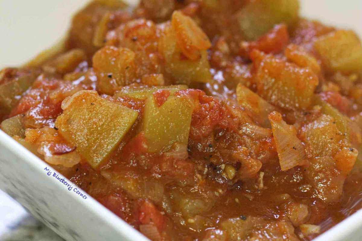 Bigos z kabaczka – pamiętam to danie z młodości. Moja mama często przygotowywała bigos z kabaczka, a ja chętnie go pałaszowałam. Właśnie teraz, w sierpniu, kabaczki (przerośnięte cukinie) i pomidory są dojrzałe i najlepsze, a cebula zebrana. To smaczne, lekkie danie przygotowuje się szybko i łatwo.