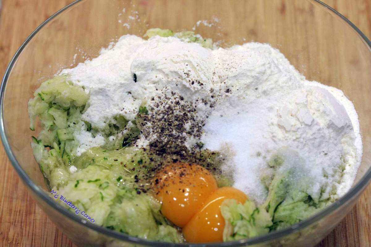 I created a recipe for Zucchini pancakes back in the 1970s when I was a teenager. It was similar to yours, but I had more flour, plus baking powder, milk, garlic cloves, and parmesan cheese, and I used a blender to chop the veggies and mix the batter.