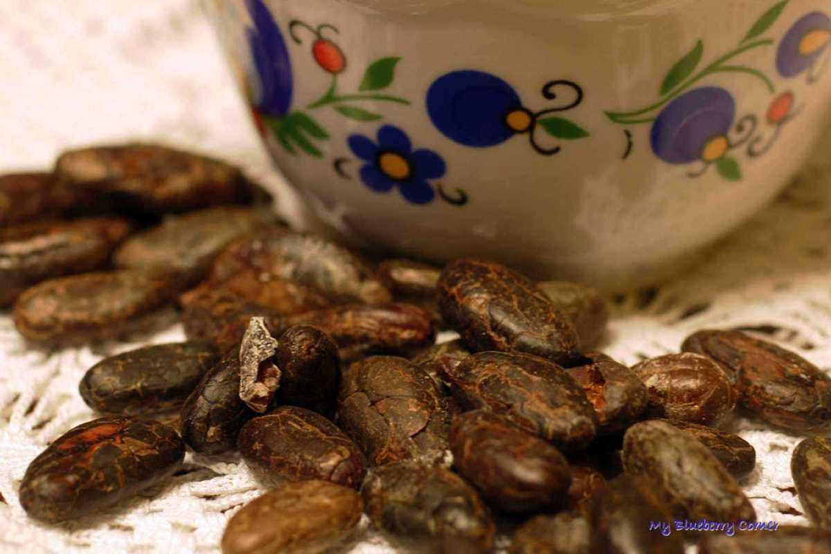 Do słoika wsypać drobno zmieloną kawę, potłuczone ziarna kakaowca (ten składnik można pominąć) i zalać spirytusem.