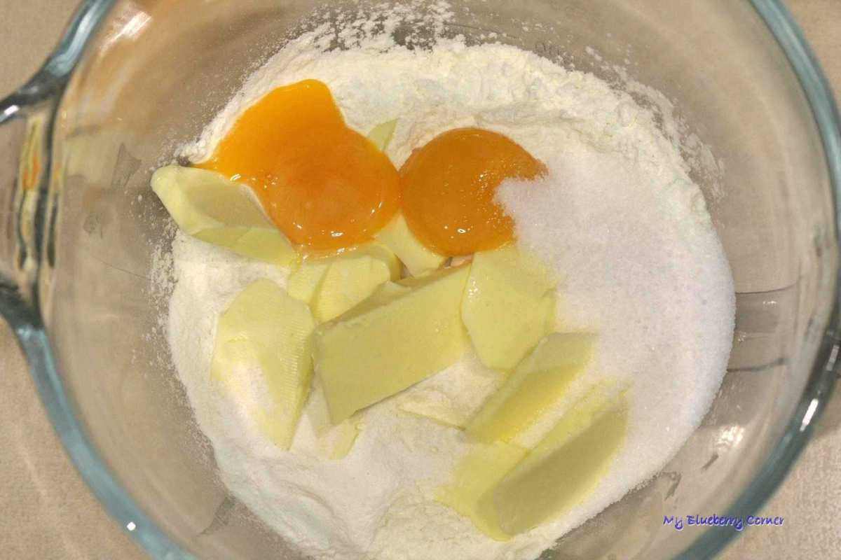 Wszystkie składniki ciasta ( masło pokroić nożem na małe kawałki) umieścić w naczyniu i szybko zagnieść przy pomocy robota lub ręką.