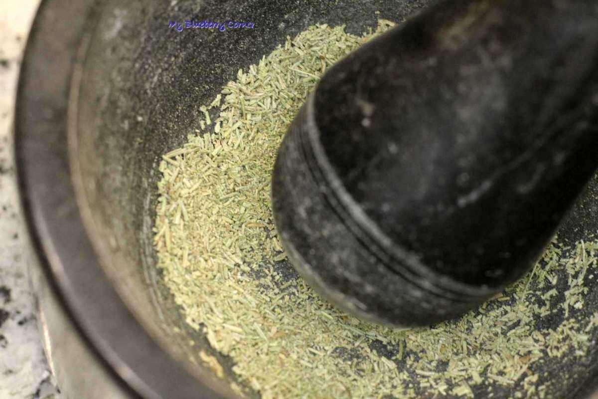 Na patelni rozgrzać masło, na tym podsmażyć pokrojone śliwki. Gdy zaczną puszczać sok dodać sproszkowany rozmaryn oraz ziele angielskie.