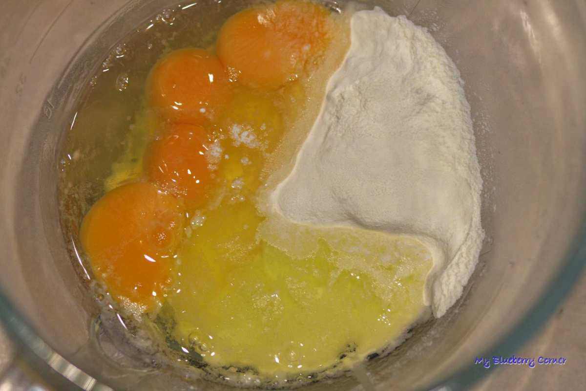 Składniki wymieszać i zdjąć garnek z ognia. W misce wymieszać mąkę i jaja.