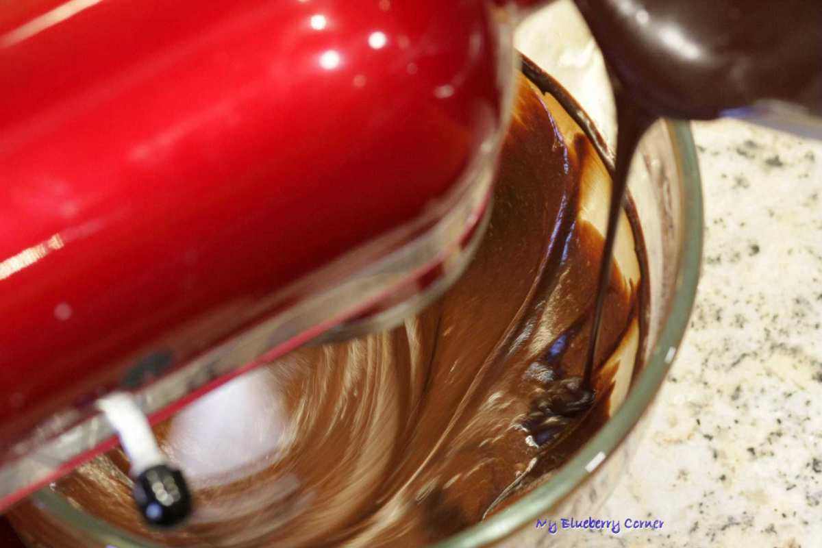 Do tego powoli dodawać syrop czekoladowy, całość ciągle mieszając.