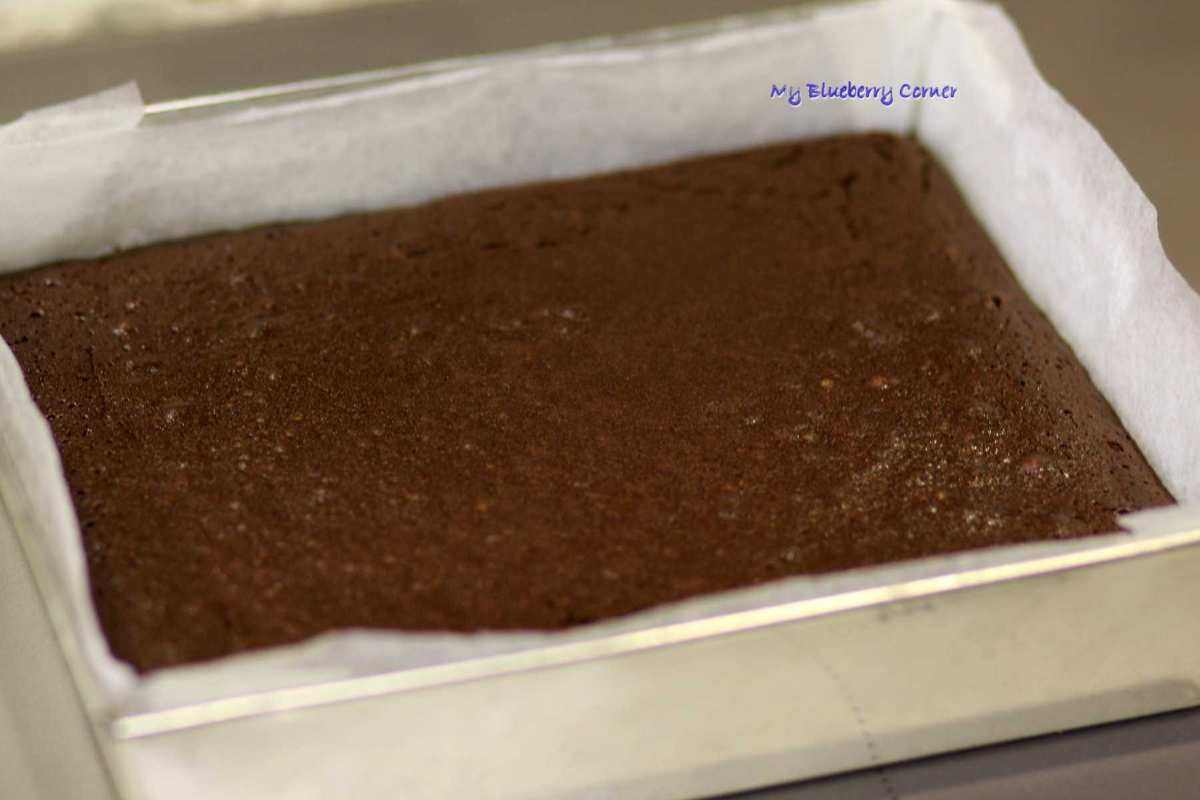 Wszystko przełożyć do formy, wyłożonej papierem do pieczenia. Piec 30 minut w temperaturze 180°C. Po upieczeniu brownie będzie w środku mokre i lepkie.