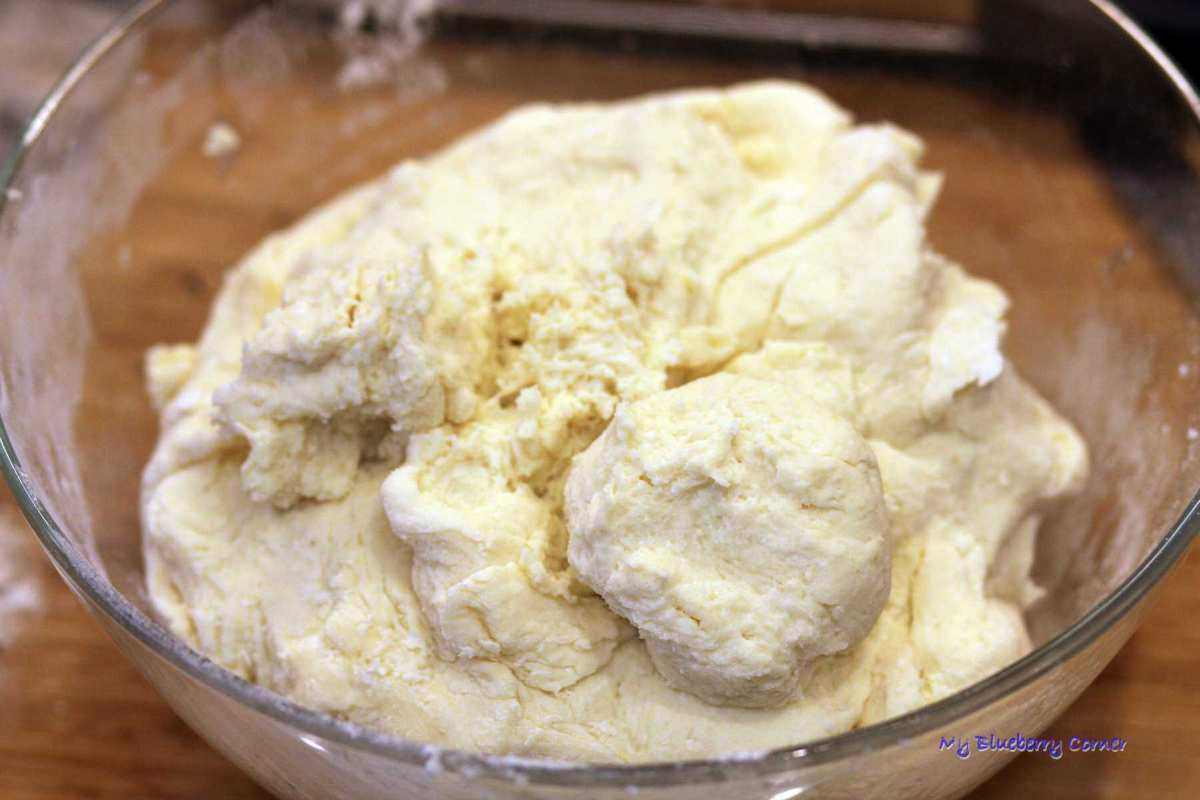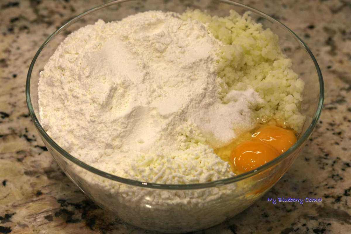 Ziemniaki obrać i ugotować w lekko posolonej wodzie. Gorące ziemniaki przecisnąć przez praskę do ziemniaków lub dokładnie ubić tłuczkiem (zimne ziemniaki można zmielić w elektrycznej maszynce do mielenia mięsa – nie próbujcie mielić gorących ziemniaków przez maszynkę, zrobią się ciągnące i gumowate). Ser powinien być również gładki. Można kupić mielony twaróg lub zmielić go w domu, można też przecisnąć go przez praskę do ziemniaków. Ziemniaki, zmielony ser, mąkę, jajka i sól dobrze ze sobą wymieszać.