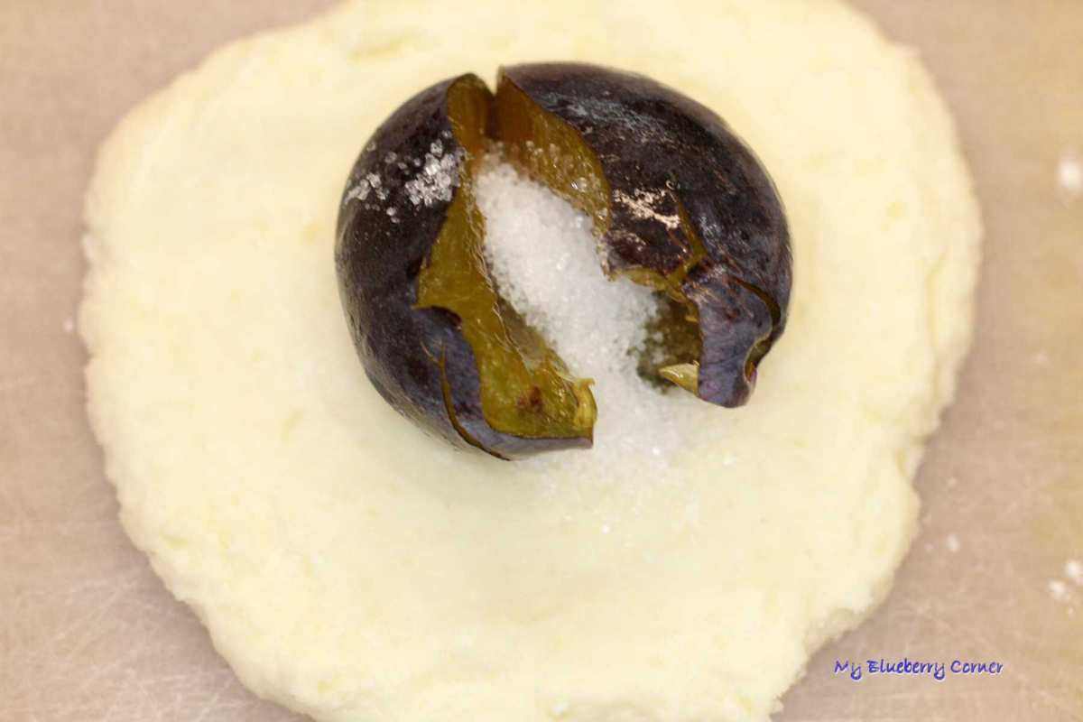 Zawinąć ciasto wokół śliwki, połączyć brzegi i zrobić idealną kulkę (jak wyjdzie nieidealna – też dobrze).