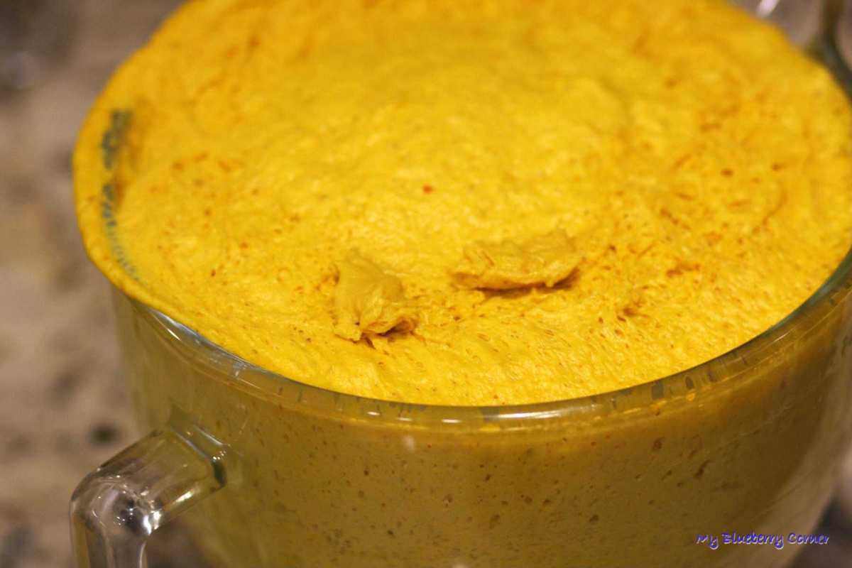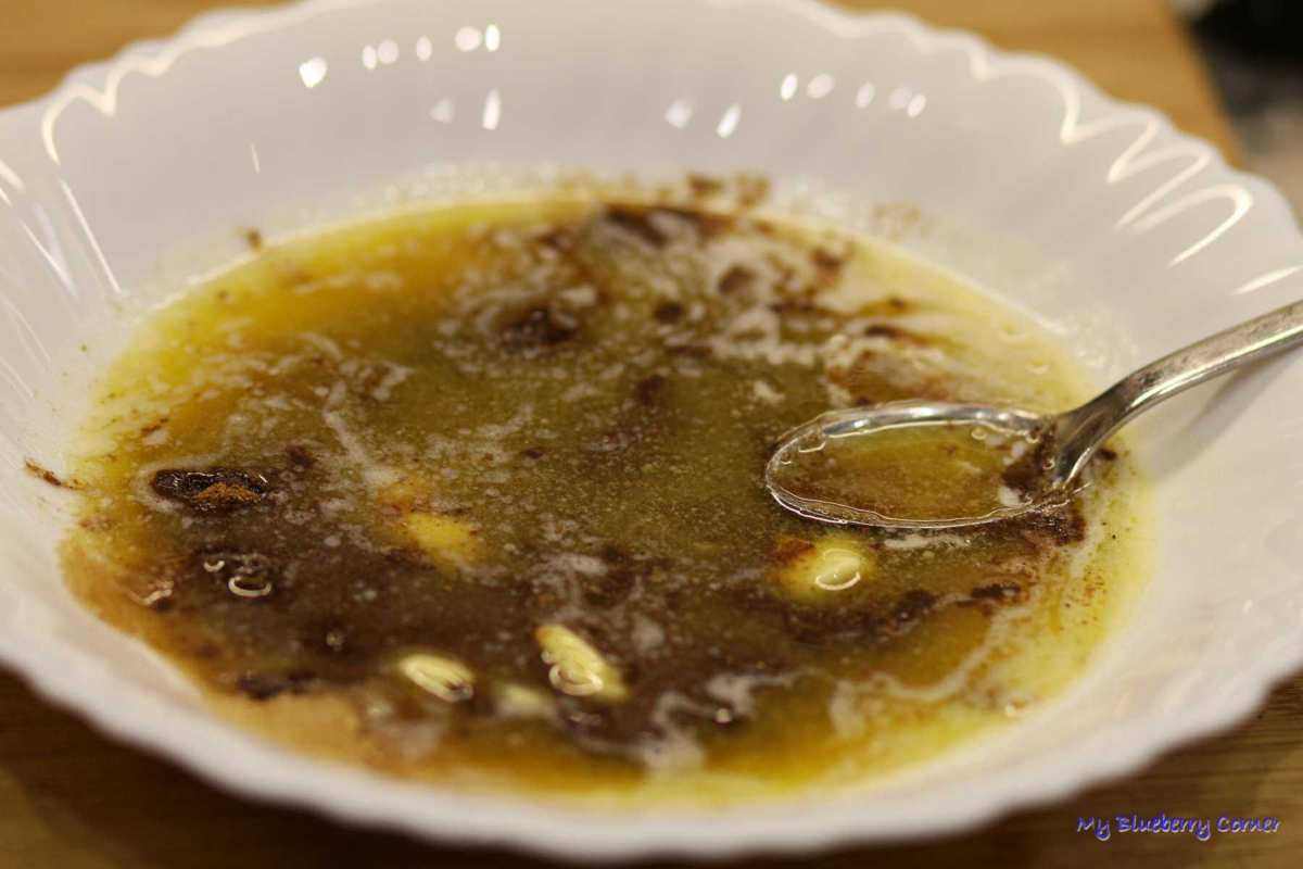 Przygotować masło z pumpkin spice. Masło roztopić (np. na patelni lub w mikrofalówce), dodać cukier, przyprawy i wymieszać.