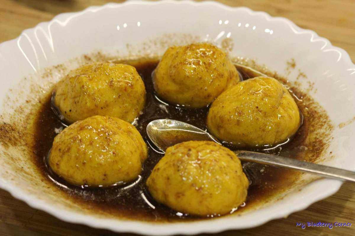 Z każdego kawałka uformować kulkę. Każdą kulkę włożyć do masła z przyprawami.
