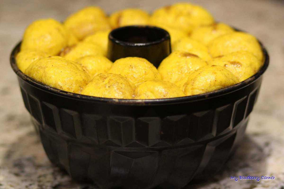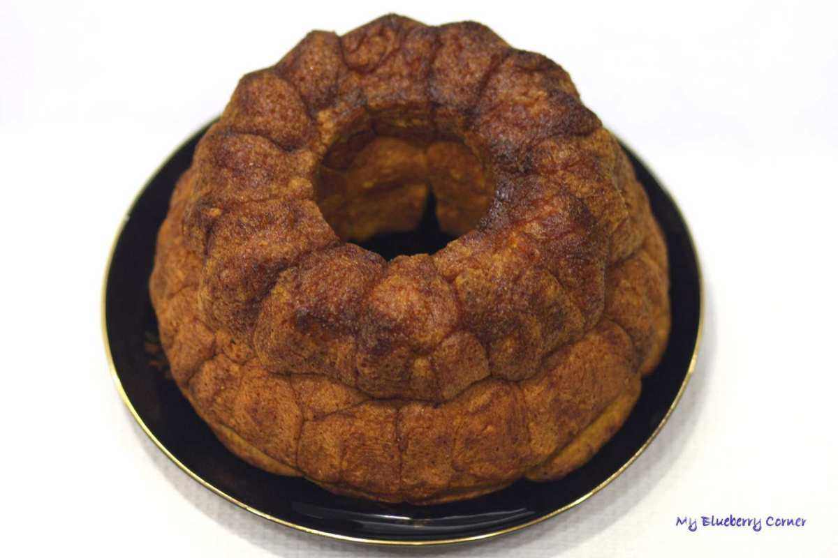 Drożdżowy, dyniowy małpi chleb to cudowne, jesienne, drożdżowe ciasto. Przyciąga pięknym dyniowym kolorem i fantastycznym maślano-korzennym smakiem. Ciasto składa się z wielu kawałków wielkości małych bułeczek, które się potem odrywa. Ciasto pięknie pachnie i jest przepyszne.