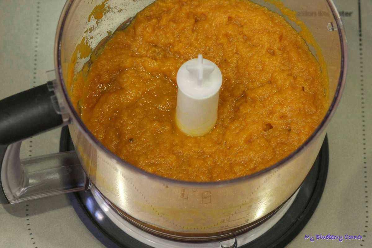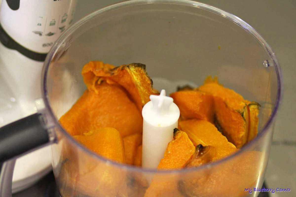 W przypadku dyni hokkaido całe kawałki (razem ze skórą) przełożyć do blendera i zmiksować na gładką masę.