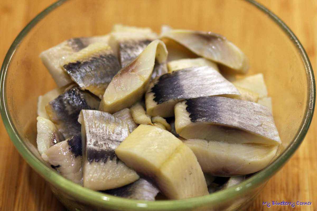 - 500 g solonych płatów śledziowych (matias lub a’la matias)