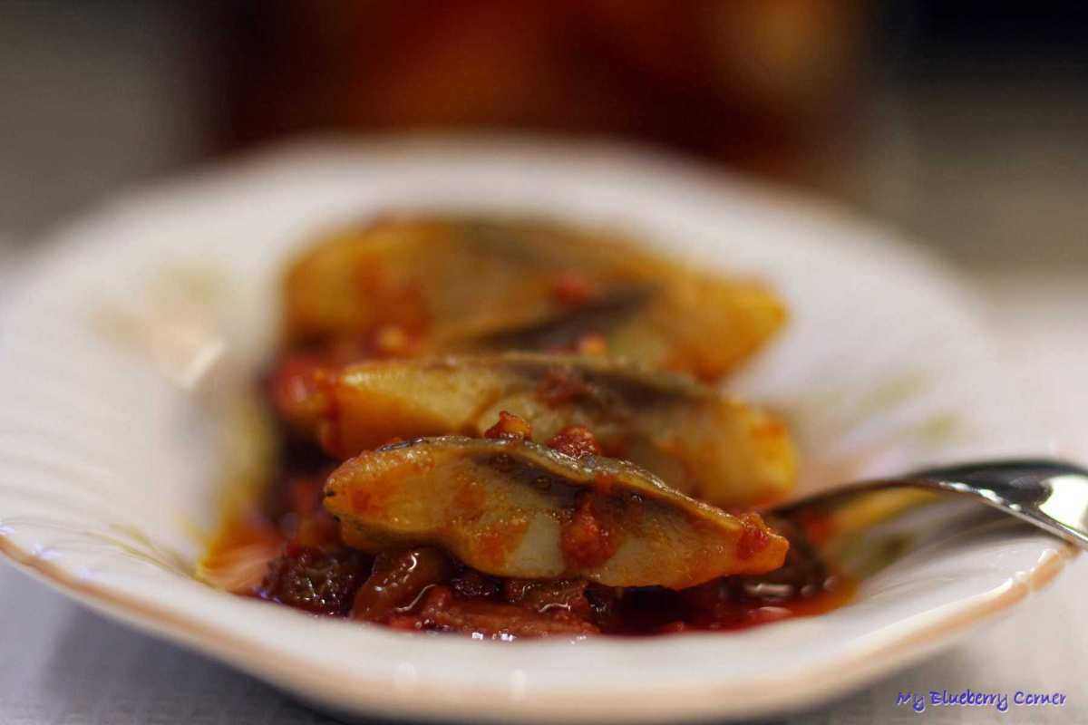 Śledzie z rodzynkami w marynacie pomidorowej przygotowuję od lat, najczęściej w okresie świąt Bożego Narodzenia, czasem na inne okazje. Przepis na tę przekąskę dostałam ponad 10 lat temu od mojej sąsiadki. Teraz potrawa ta często gości na moim stole. Również moim przyjaciołom te śledzie zasmakowały i teraz sami je przygotowują.
