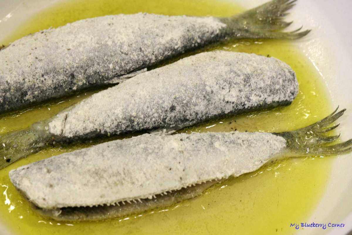 Na talerz wysypać mąkę, obtoczyć w niej każdą rybkę.
