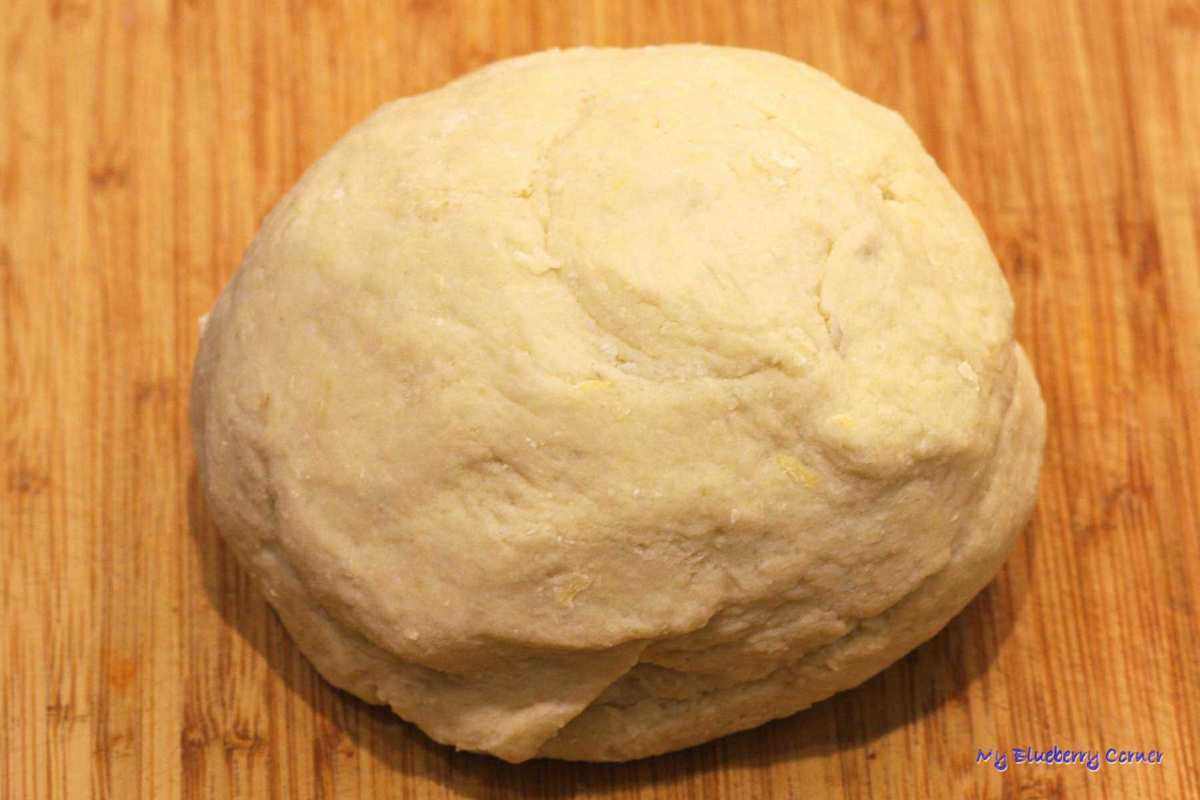 Zagnieść wszystkie składniki do połączenia się. Jeśli ciasto wciąż lepi się do dłoni, podsypać odrobinę mąki, obtoczyć ciasto.