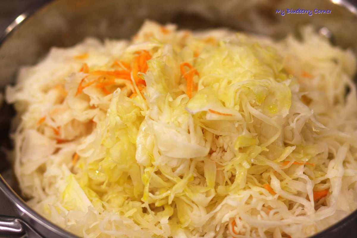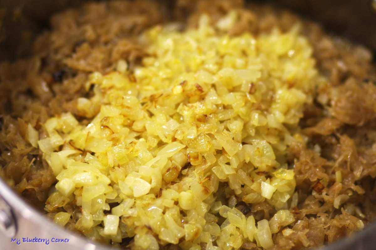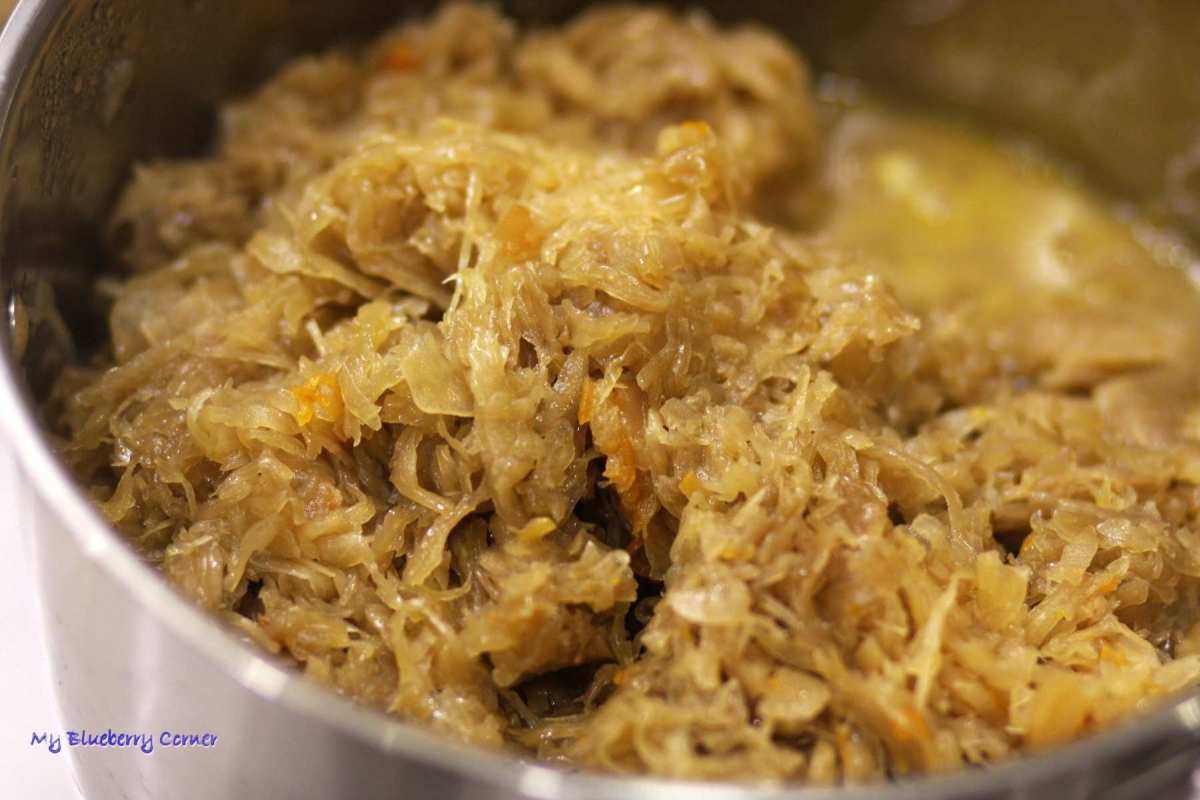 Teraz należy kapustę podgrzewać powolutku, żeby odparować cały płyn, żeby podczas klejenia pierogów, pasztecików czy zawijania kulebiaka farsz nie przeciekał. Na koniec dodać kilka łyżek oleju lnianego, który zdecydowania poprawi smak kapusty. Jeśli zdecydujecie się na przygotowanie łazanek z kapustą, można dodać do kapusty kilka łyżek wody z gotowania makaronu, będzie lepsza.