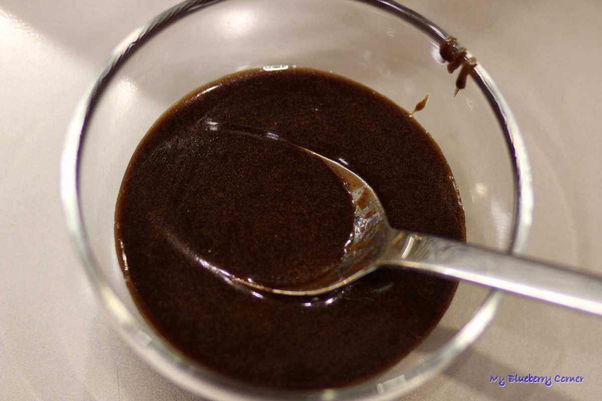Do miseczki odlać 6 łyżek stołowych masy, która później zostanie użyta jako polewa do ciasta.