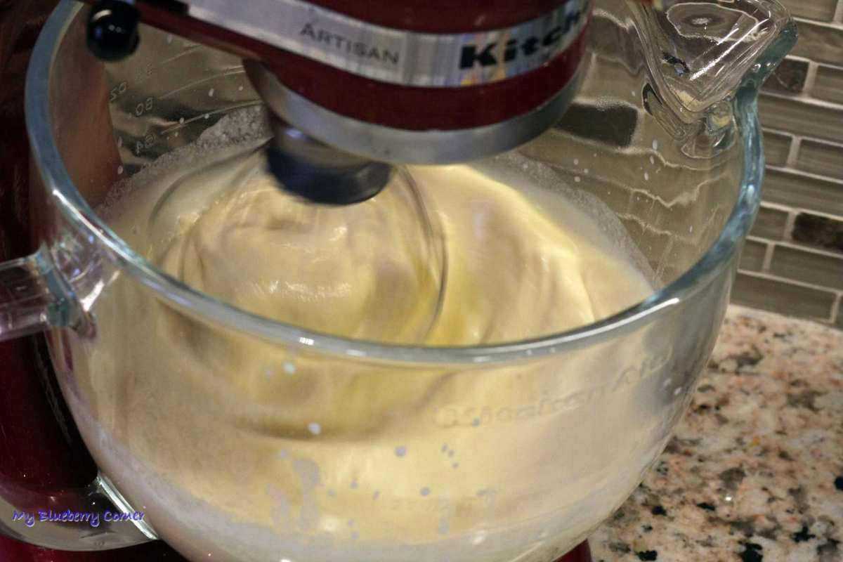 Masło rozpuścić i ostudzić. Mąkę, jajka, cukier, sól, mleko i masło (lub olej) umieścić w misce i wymieszać za pomocą miksera.