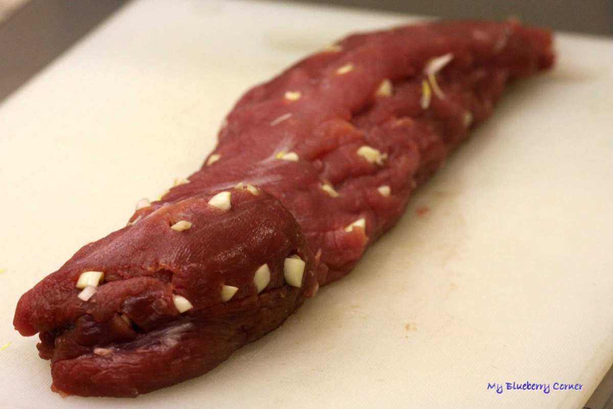 Polędwiczkę naszpikować czosnkiem i równo rozłożoną zamrozić.