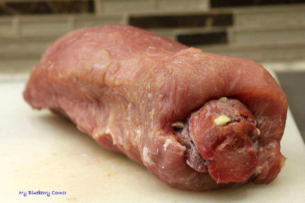 Schab nadziewany polędwiczką może być smaczną wędliną lub ciekawym daniem głównym. Potrawa wygląda i smakuje ciekawie. Schab jest jaśniejszym mięsem niż polędwiczka, a ząbki czosnku dodają wyjątkowo dużo smaku. Czosnek, którym naszpikujemy polędwiczkę doda wędlinie mocnego aromatu, więc jeśli nie przepadacie za nim, możecie ograniczyć jego ilość.