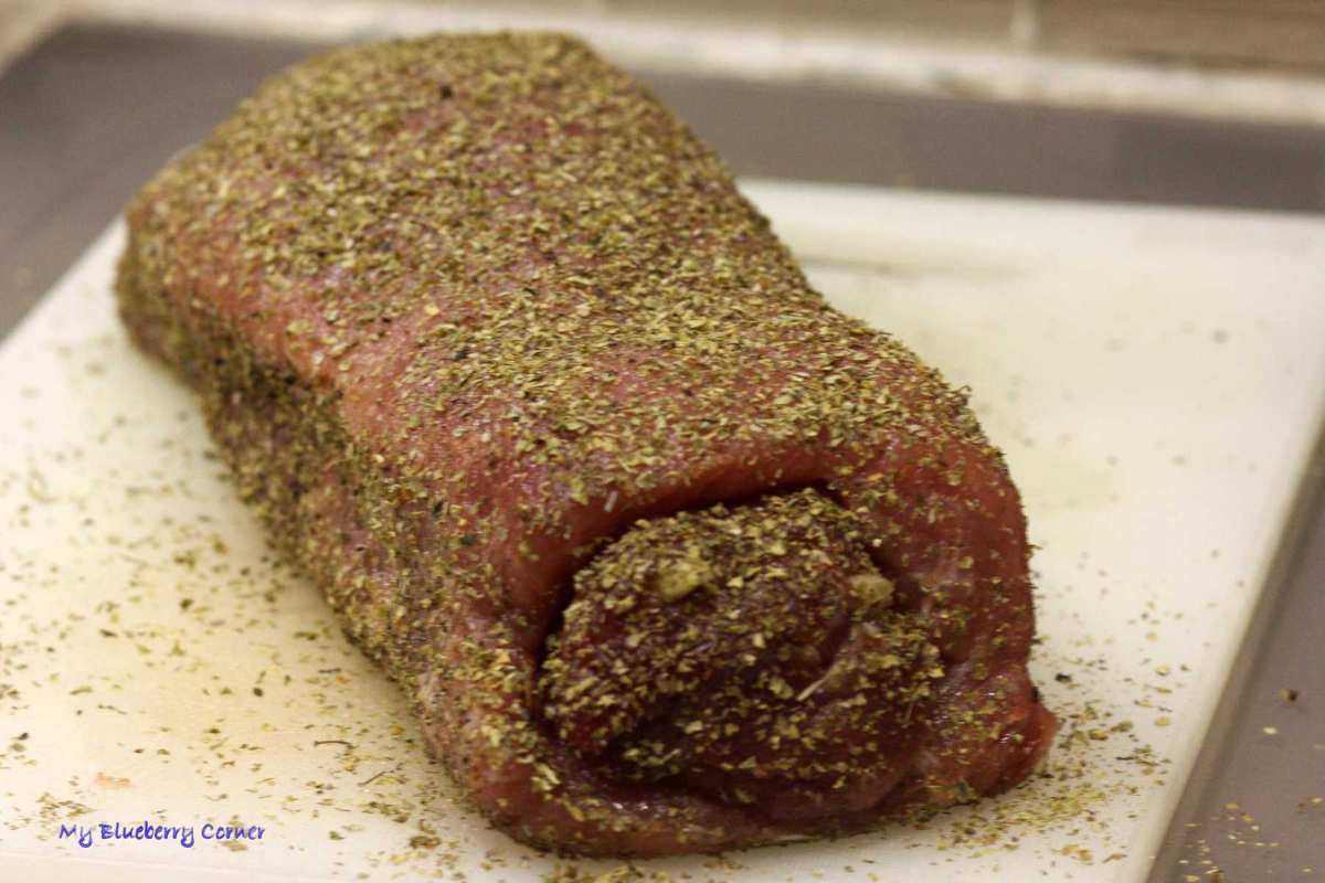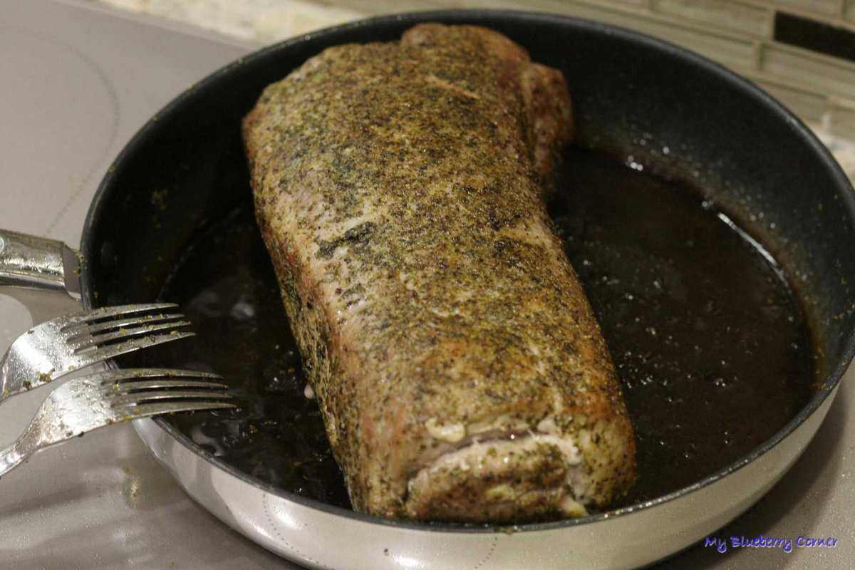 Mięso obsmażyć (zrumienić) na oleju rzepakowym z każdej strony i zapakować do rękawa do pieczenia.