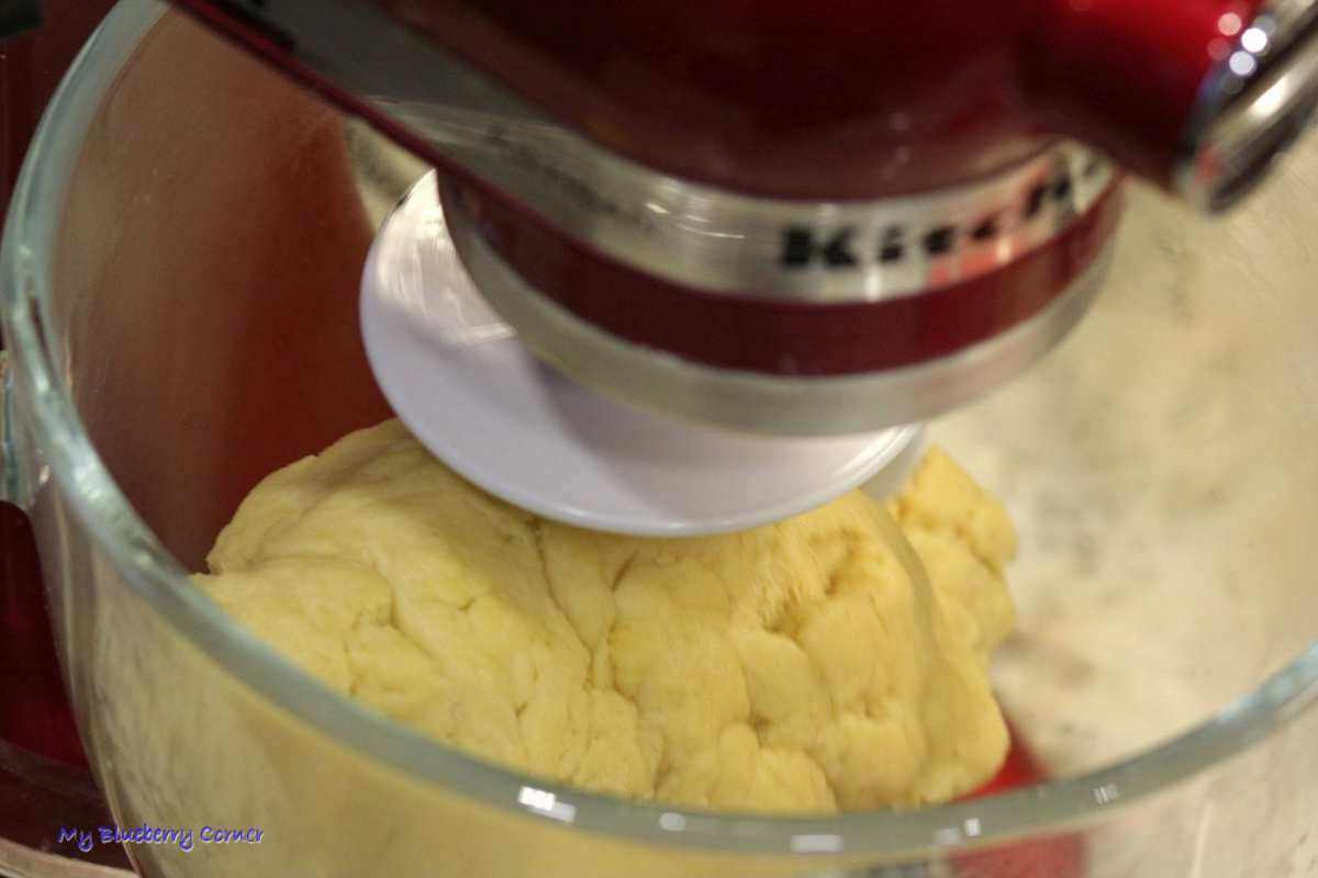 Wszystkie składniki wymieszać hakiem do mieszania ciasta drożdżowego lub zagnieść ręcznie.