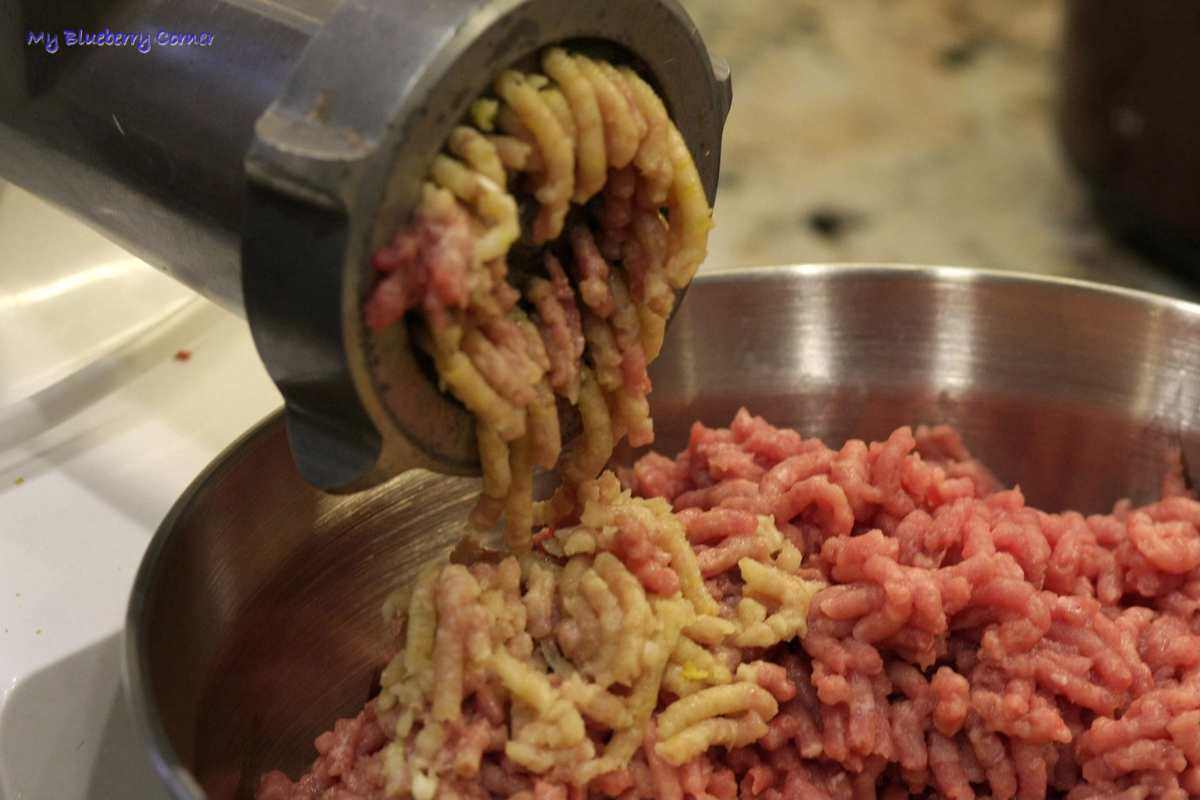 W maszynce do mielenia mięsa najpierw zmielić krakersy, potem mięso i czosnek.