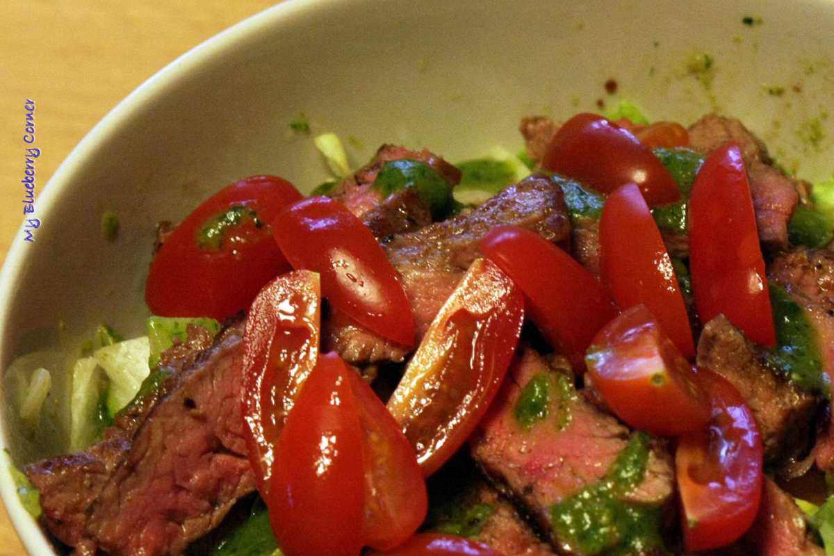 Sałatka z wołowiną i pesto to świeża, pyszna, sycąca przekąska. To jest sałatka na każdą okazję. Latem może być pełnowartościowym posiłkiem. Zimą doskonała na lunch czy na kolację.