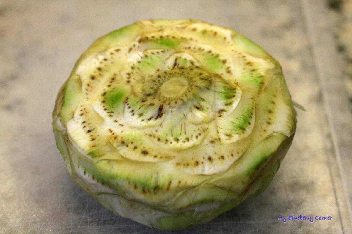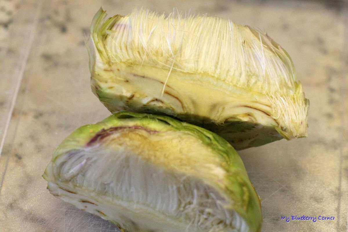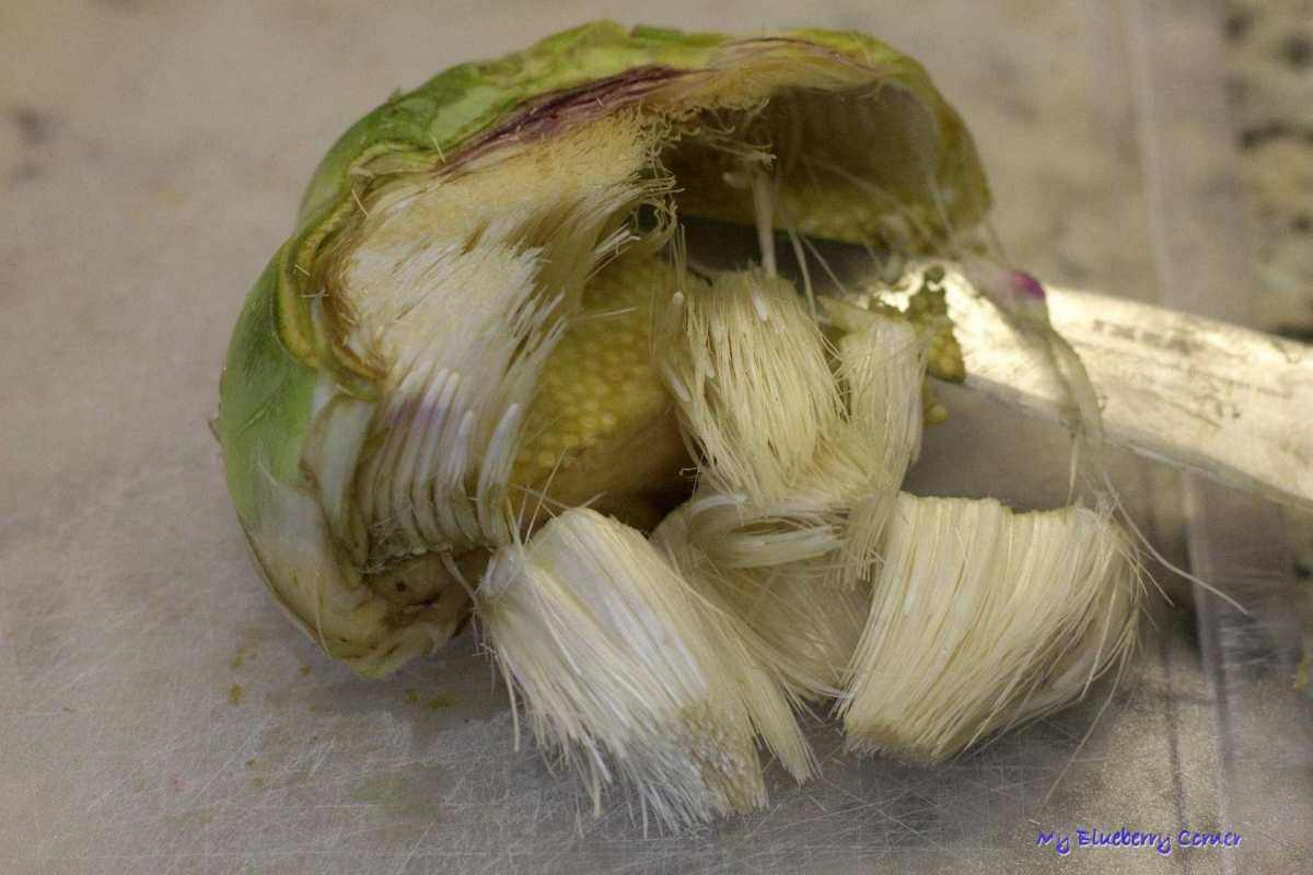 Nożem odciąć podstawę igiełek i wszystkie je usunąć z karczocha.