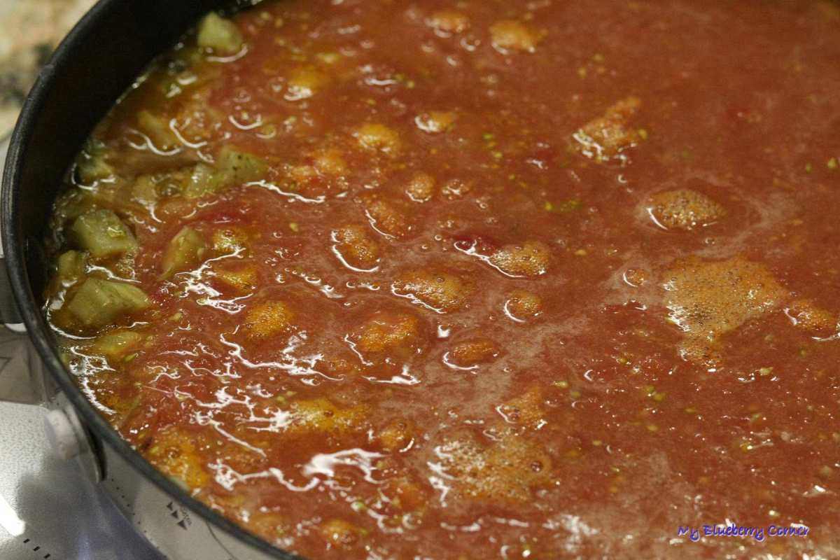 Doprawić solą i pieprzem, dodać zioła i pokrojonego karczocha. Podgrzewać do czasu, aż składniki sosu będą miękkie.