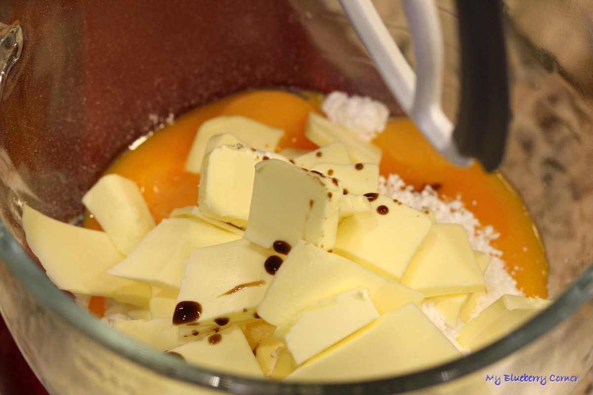 Zmieszać mąkę, cukier, żółtka, posiekane nożem zimne masło i ekstrakt z wanilii na jednolite ciasto.
