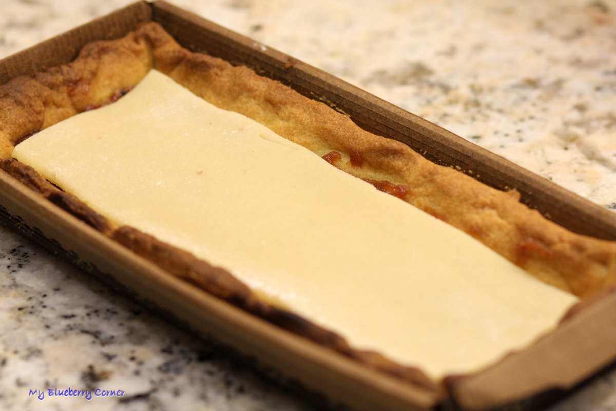 Wyjąć, ostudzić. Na dno wyłożyć 3 – 4 łyżeczki marmolady różanej i równo rozsmarować.