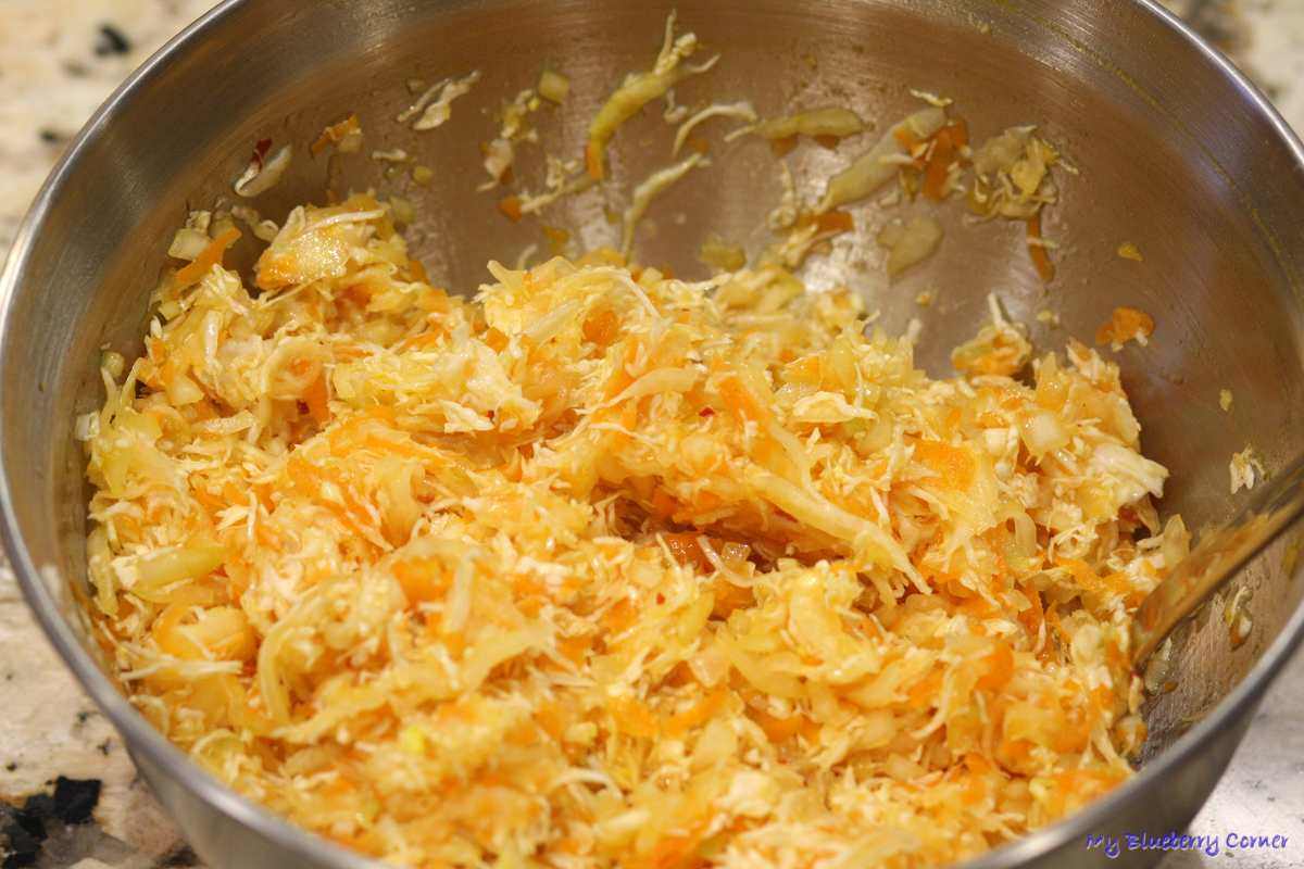 Wyrobić ręką, ugniatając wszystkie składniki – to ważne, wtedy kapusta zmięknie. Odstawić na około 15 minut. To najlepsza surówka do chińszczyzny.