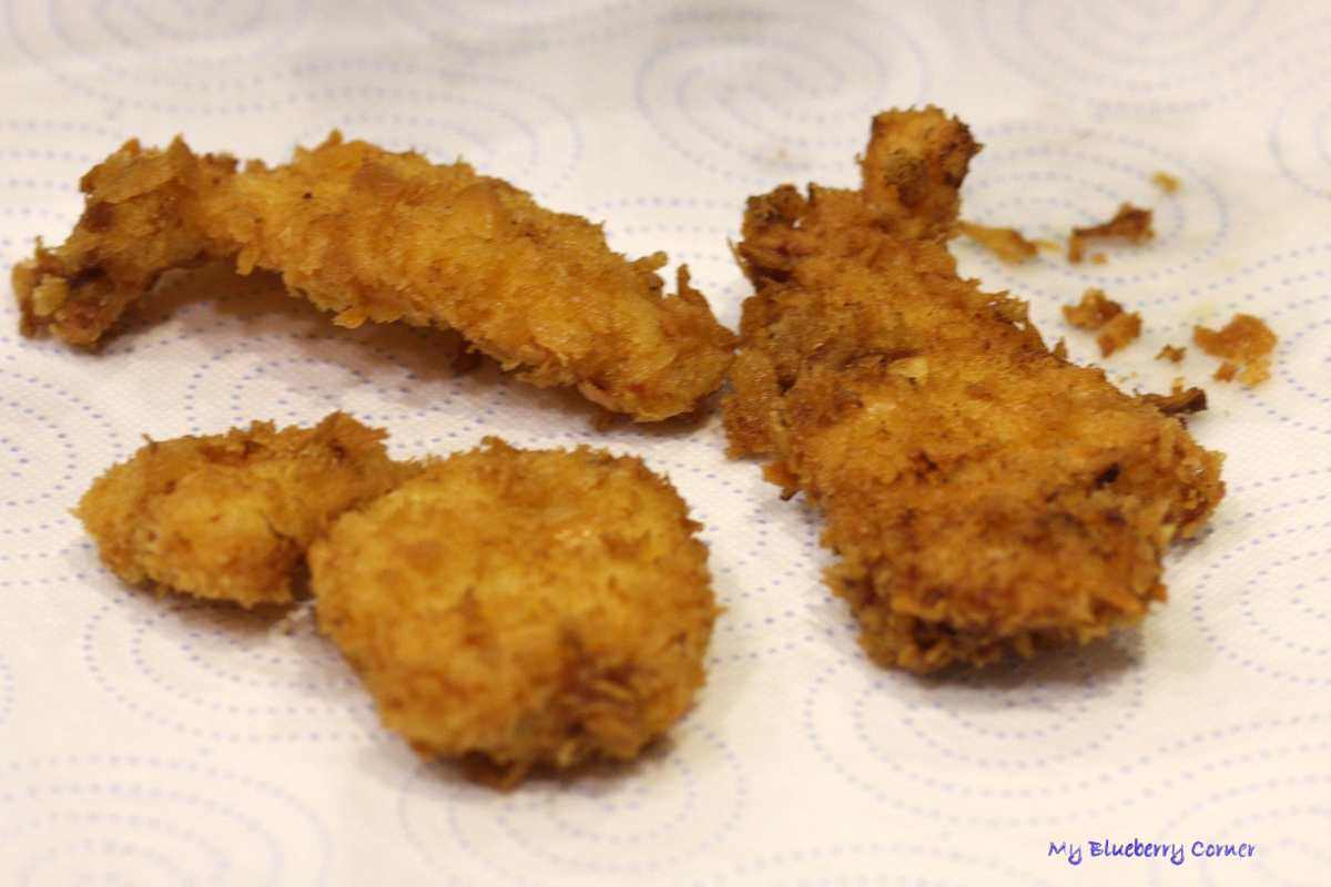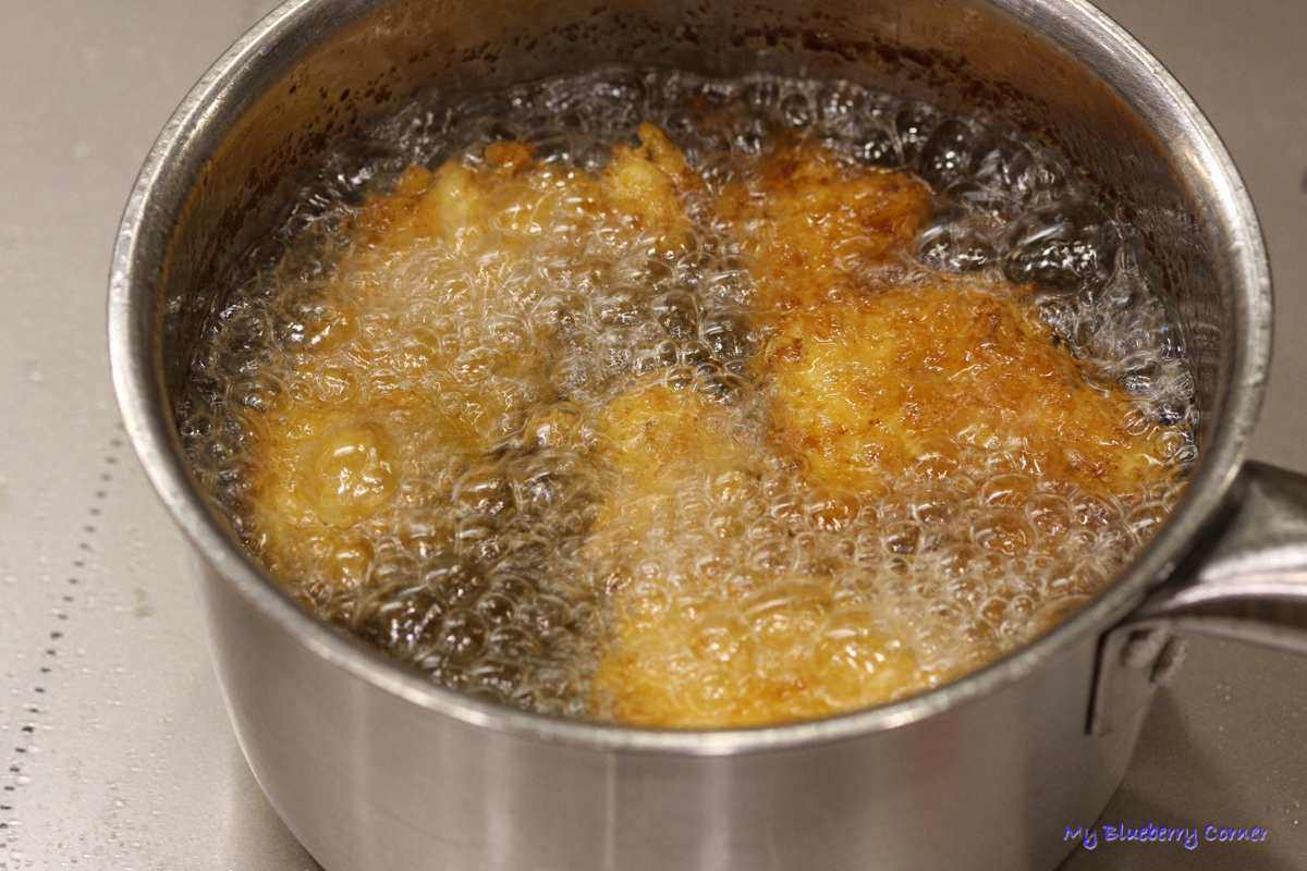 Wyłowić kąski i odłożyć na chwilę na ręcznik papierowy, żeby odsączyć nadmiar oleju.