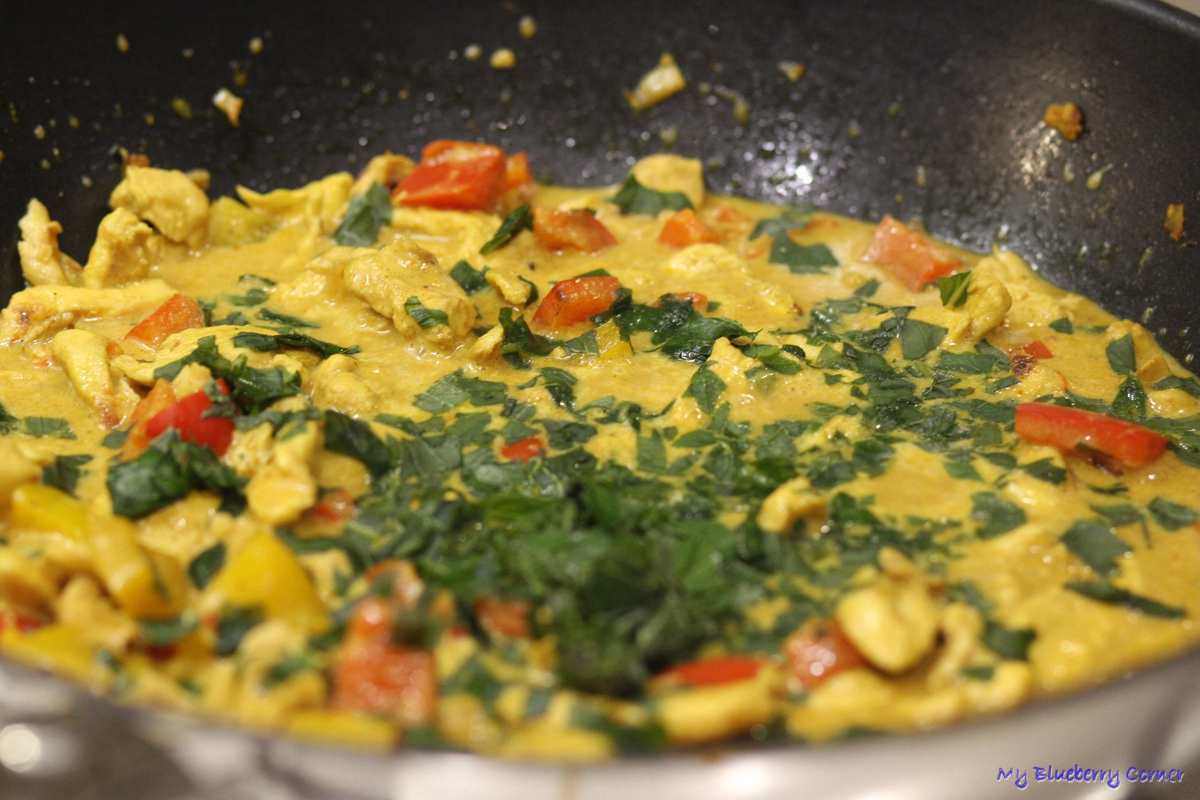 Tajskie curry – eksplozja kolorów i smaku. Kuchnia tajska to wpływy hinduskie i chińskie, jest ona bardzo aromatyczna i smaczna. Mleko kokosowe, trawa cytrynowa, chili, imbir i liście limonki kaffir są charakterystyczne dla tej kuchni. Świeże zioła takie jak mięta, kolendra i bazylia dodają jeszcze więcej aromatu. Ciekawym składnikiem tajskiej kuchni jest sos rybny, którym świetnie doprawia się (dosala) potrawy. Moje curry jest bardzo tajskie i aromatyczne.