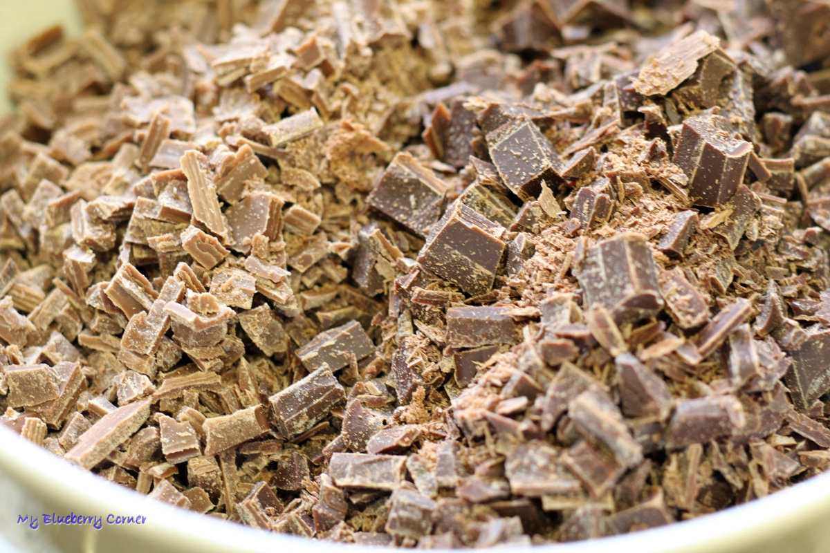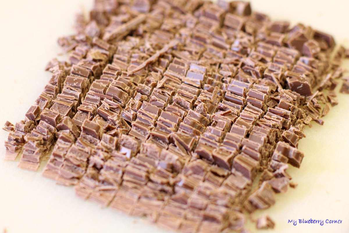 Czekolady drobno pokroić.