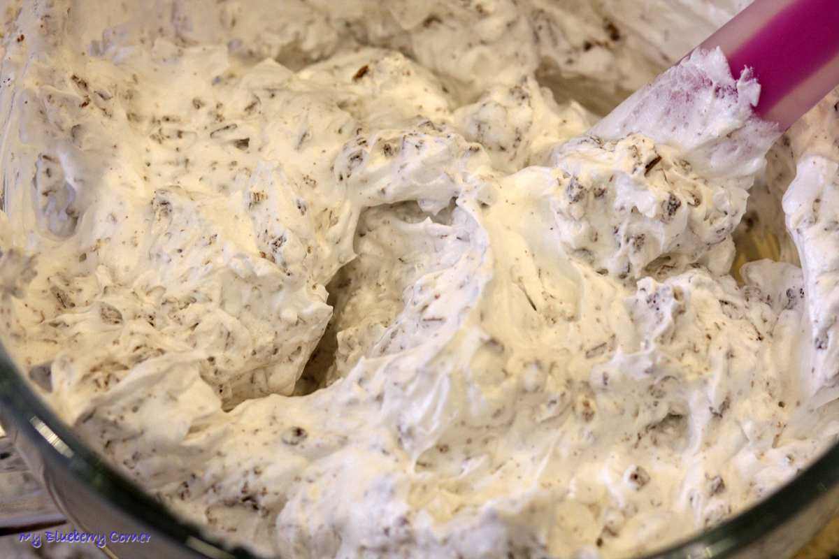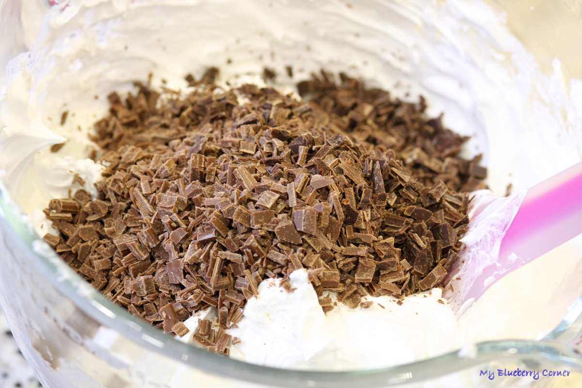 Gdy piana będzie sztywna dodać czekoladę i zamieszać łyżką.