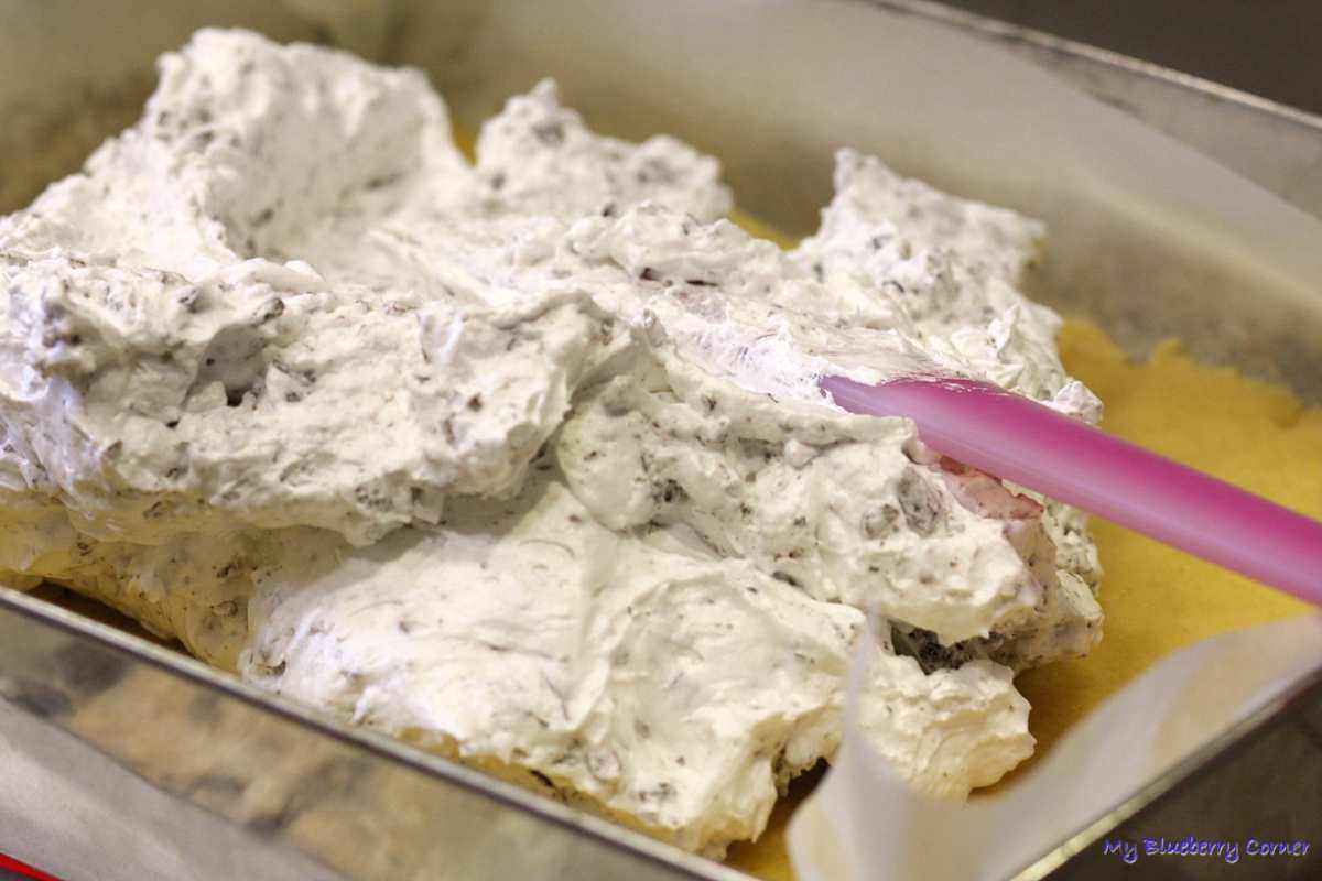 Czekoladową pianę wyłożyć na ciasto.
