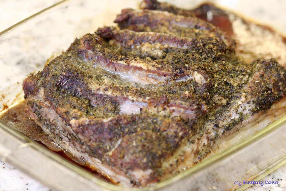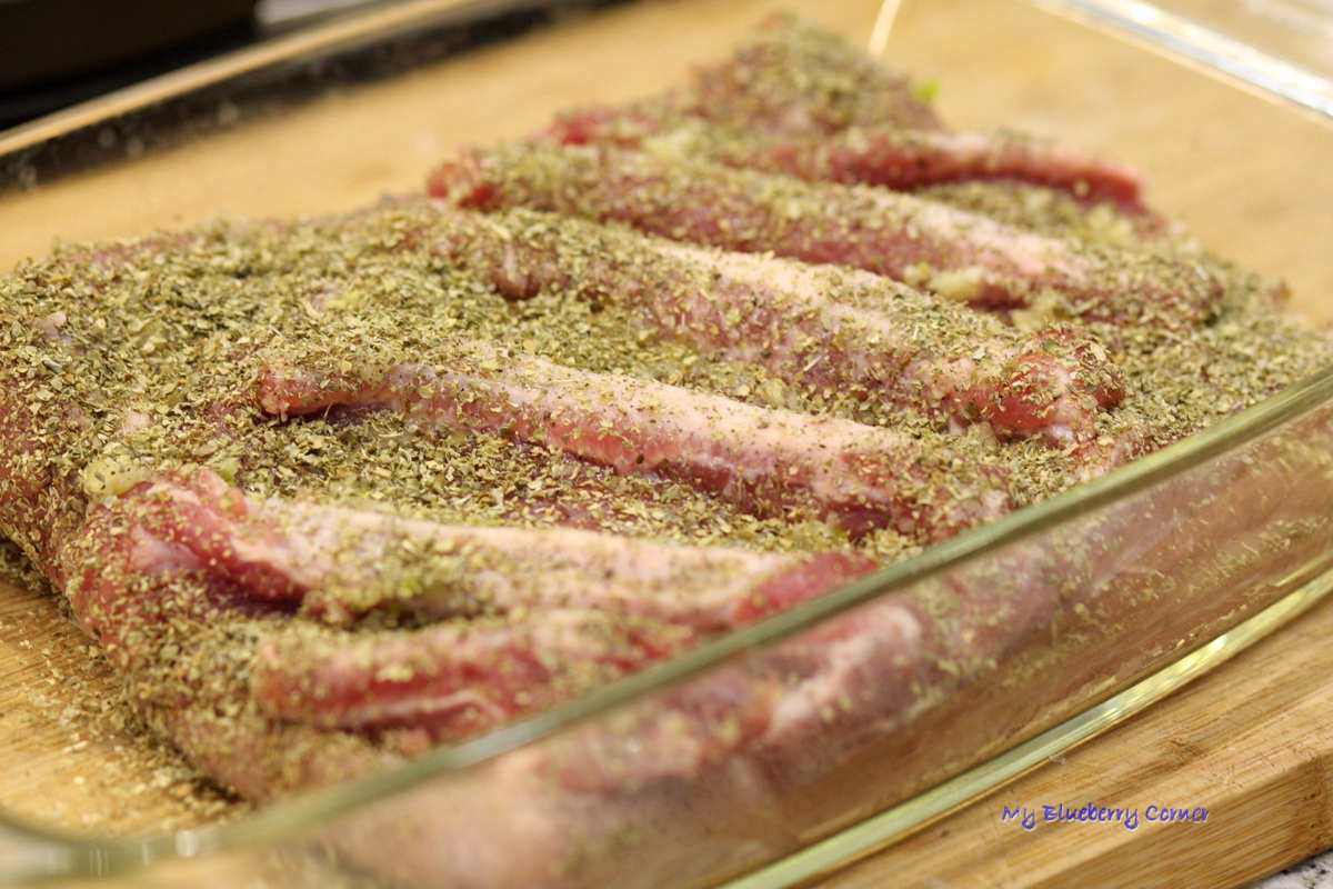 Włożyć do żaroodpornego naczynia przyprawioną częścią do dołu i przyprawić od góry.