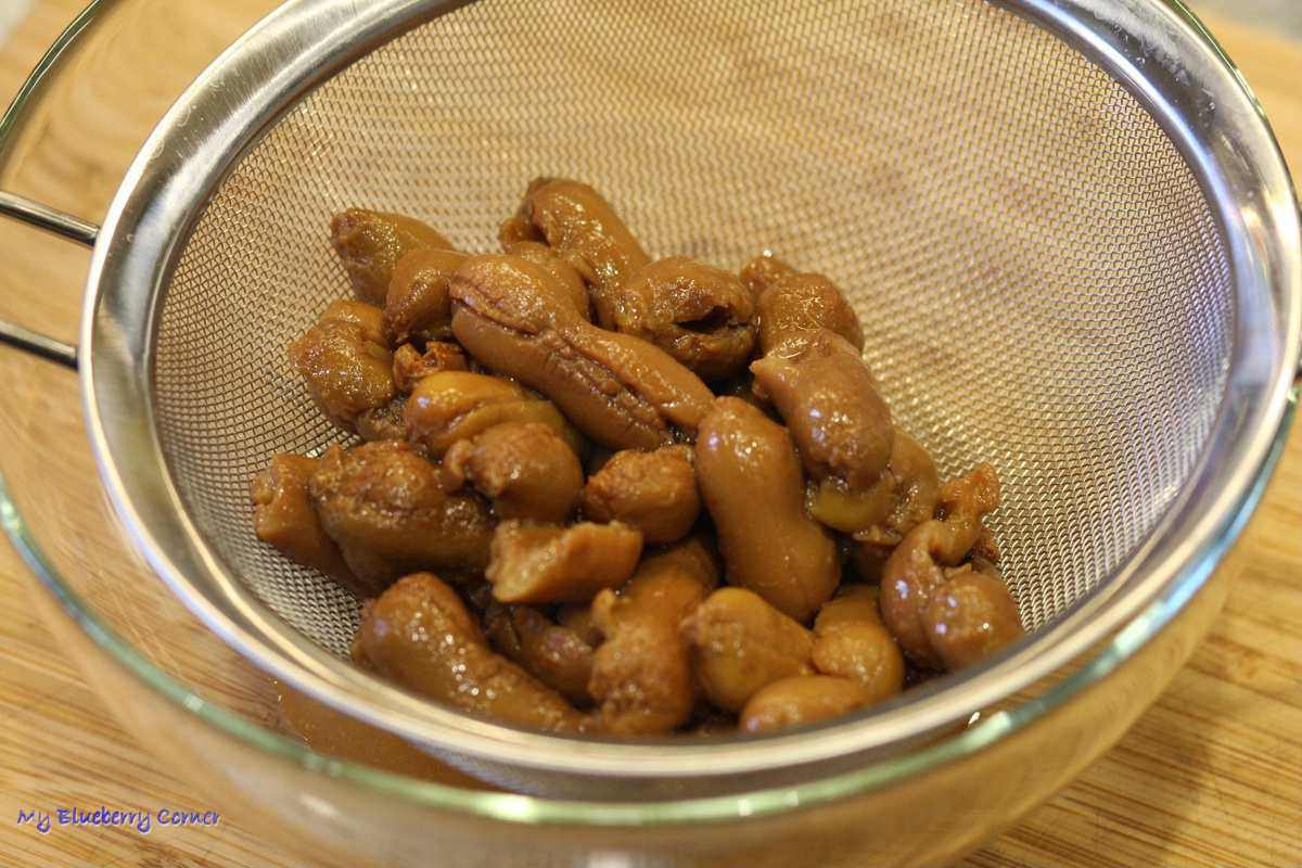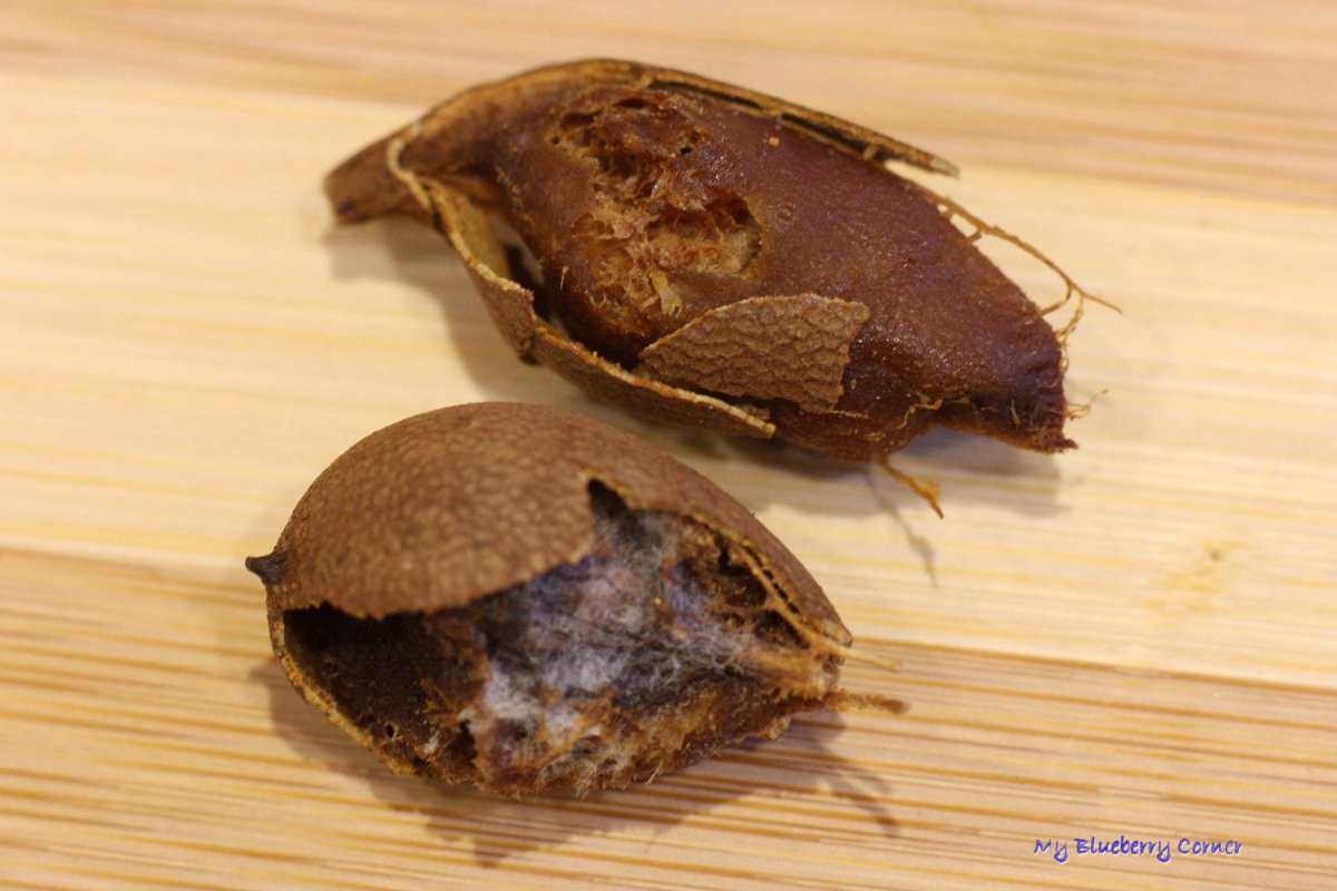 Świeże owoce obrać ze skorupek, zdjąć włókna i usunąć z wewnątrz twarde pestki.